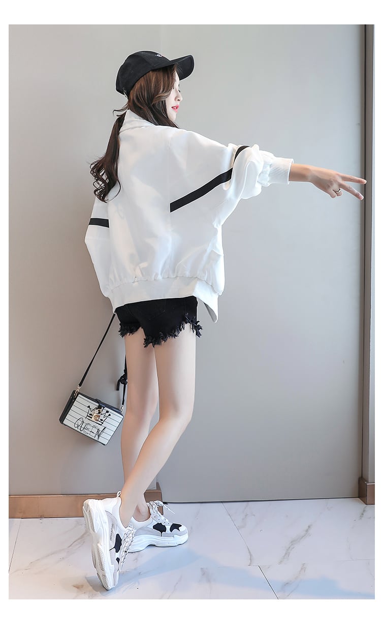アウター レディース 送料無料 ライン ブルゾン ジャケット ジャンパー ジップ 襟付き 長袖 スポーティ ドルマンスリーブ ハイネック おしゃれ かわいい オーバーサイズ ゆったり ビッグシルエット メンズライク カジュアル ラフ こなれ感 無地 普段使い 流行 ホワイト S M L XLL