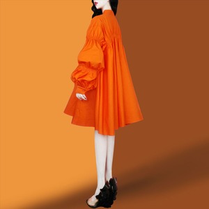 ランダムにギャザーを集めて立体的に仕立てたワンピースです。