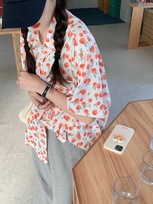 レトロなフルーツプリントマニッシュで抜け感のある柄シャツです。