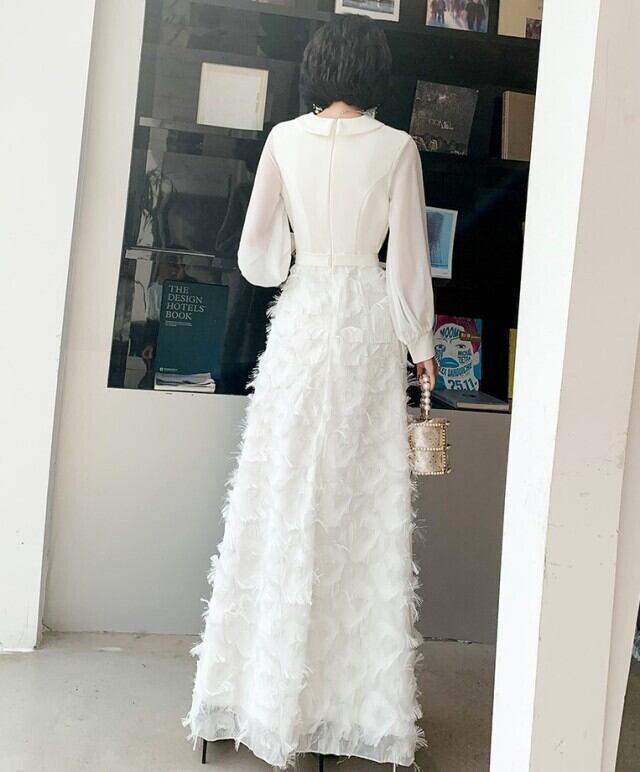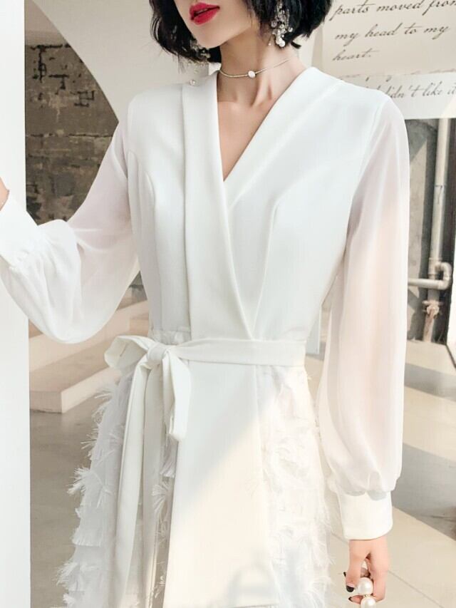 ワンピース レディース 送料無料 2色 長袖 Vネック ドレス レース フレアワンピース 起毛 バルーンスリーブ シフォン 透け感 フェザー 羽 ふわふわ カシュクール風 ミディアム丈 リブニット タイト 袖なし カシュクール フレア シフォン ウエストマーク ウエストリボン エレガント 大人可愛い きれいめ 華やか 上品 レトロ クラシック ガーリー モード系 ホワイト ブラック ウエストマーク リボン オケージョン 体型カバー 高見え XS S M L XL 2XL 3XL