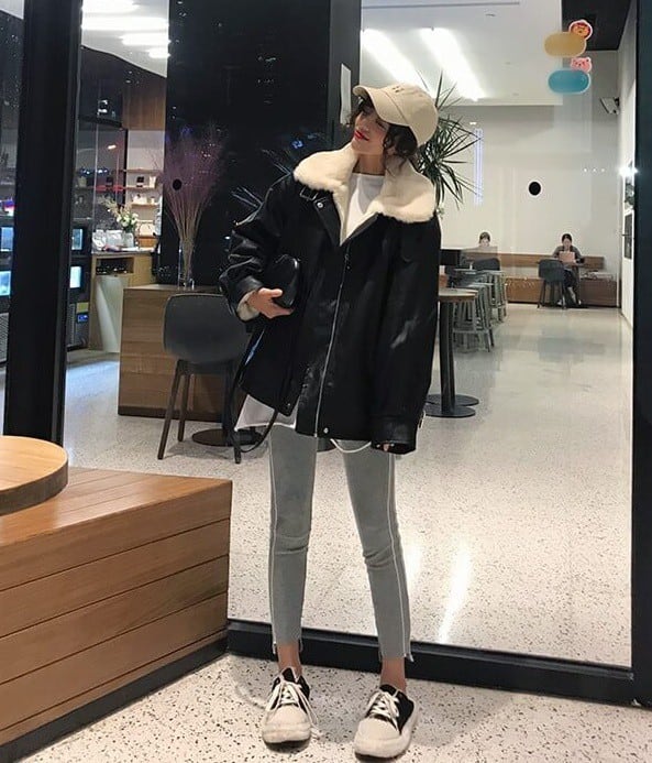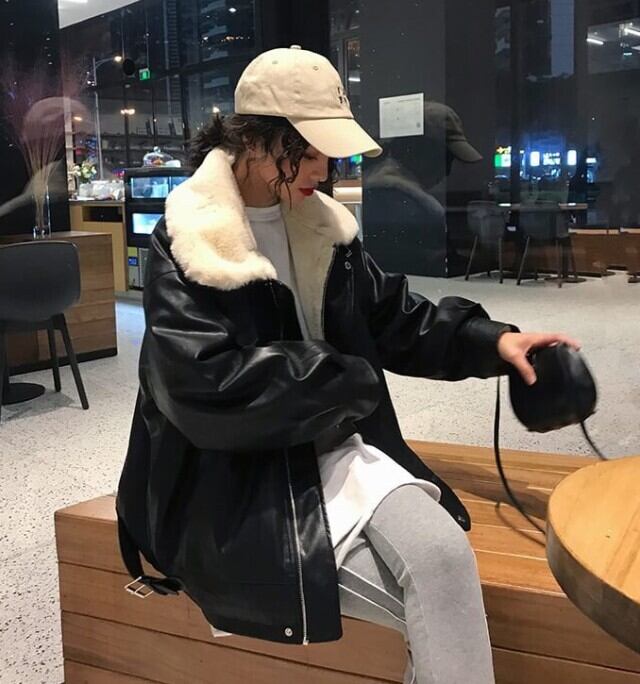 マニッシュなレザーとファーのミックスで大人可愛いジャケットです。