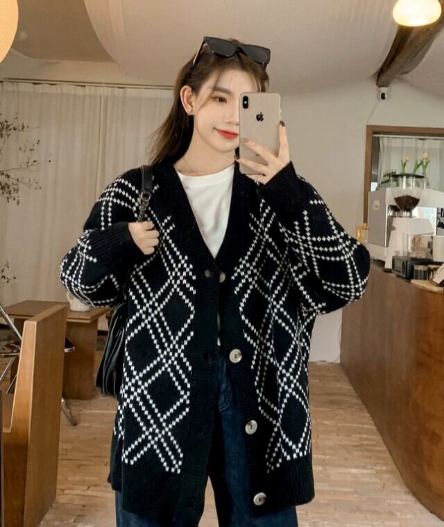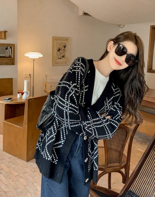 トップス レディース 送料無料 長袖 カーディガン チェック 格子 モヘア ライン ブルー オーバーサイズ バイカラー ざっくり Vネック ゆったり ニット ショート丈 ゆったり 可愛い Vネック 通勤 オフィス ビジネスシーン 休日 デート お出かけ ランチ ママ友ランチ 公園デビュー カジュアル デイリー 日常 シンプル 通学 学生 10代 20代 30代 40代 幅広い年代 春 秋 冬 着回し 韓国ファッション オルチャン 楽ちん ブラック ワンサイズ
