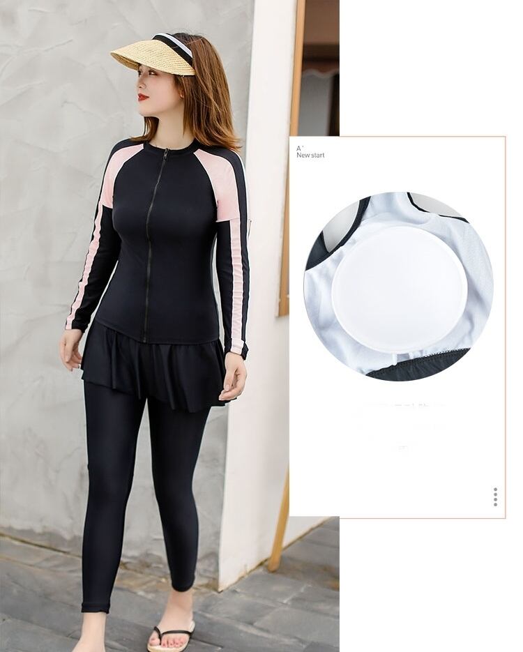 水着 レディース 送料無料 2色 ラッシュガード ハーフパンツ トップス スカート付き レギンス 長袖 ビーチグッズ ジップ 切り替え 柄 フィットネス水着 セットアップ 体型カバー 細見え くびれ ライン 日焼け対策 スポーティー かっこいい カッコイイ 大きいサイズ ビッグサイズ プラスサイズ ブラック 3XL 4XL 5XL 6XL 夏 サマー レジャー アウトドア 海 リゾート ビーチ マリンスポーツ 動きやすい 楽ちん 旅行 定番 10代 20代 30代 大きいサイズ ピンク ブルー