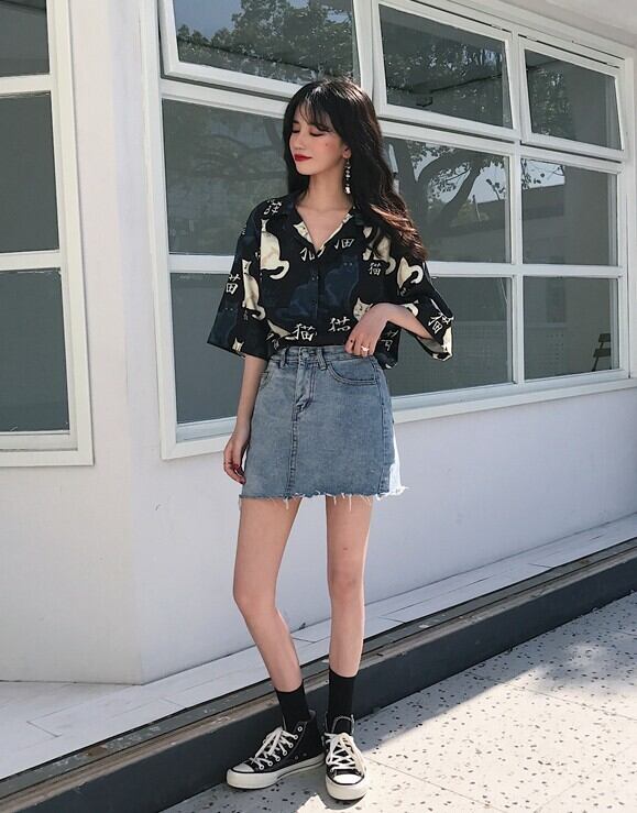 アジアンテイストな漢字と猫プリントがマニッシュで抜け感のある柄シャツです。