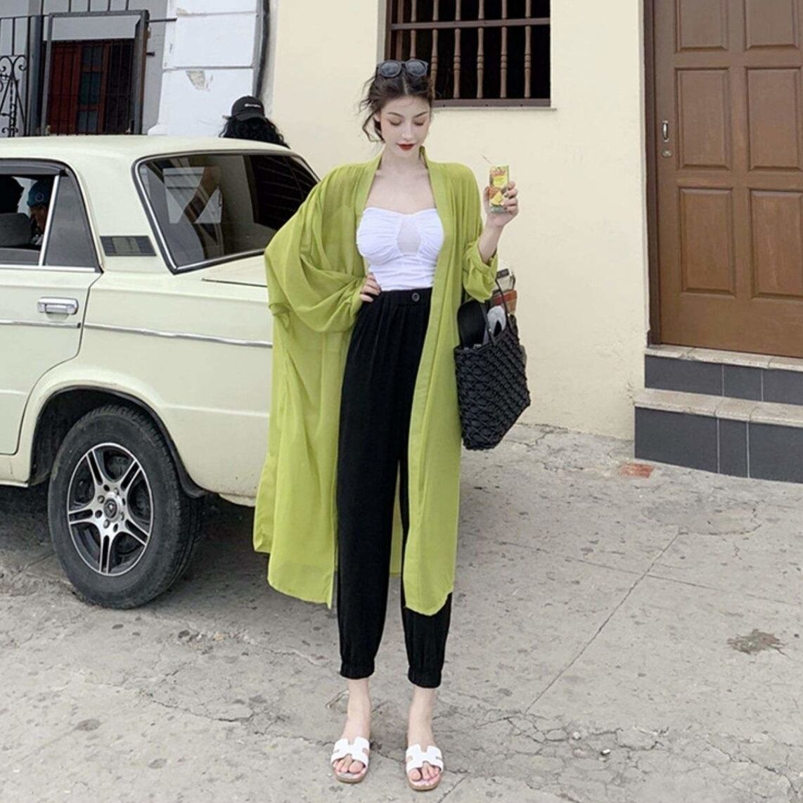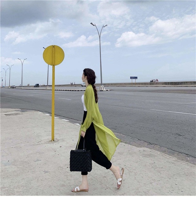 ベーシックな薄手ロングカーディガンです。 トレンドの長め丈で、日よけや冷暖房対策などにさっと羽織れます。 透け感のあるシフォン生地でブラウスのようにカジュアルな着用感です。 【カラー】 ホワイト、ブルー、ブラック、グリーン、イエロー、アプリコット、パープル 【サイズ(㎝)】 S:着丈90 バスト91 M:着丈90 バスト92 L:着丈92 バスト93 XL:着丈92 バスト95 2XL:着丈94 バスト97 3XL:着丈94 バスト99 ※1-3cmほどの誤差がある場合がございます。 【発送について】 お取り寄せ商品のため、ご入金確認後、お届けまでに「10-24日程度」のお時間がかかります。 通常よりもお時間がかかってしまう場合もございます。 欠品や商品の不具合などにより、商品をお届けすることができず、ご注文をキャンセルさせていただく場合もございますのでご了承ください。 【商品について】 海外製品のため日本商品に比べ品質が劣ります。 糸のほつれ、多少の汚れやシミ、ファスナーが固い、デザインの若干の違いなどは不良品には該当しませんのでご了承ください。 お手持ちの携帯やPCの画面設定の影響により、実物と色味が異なって見える場合がございます。 【返品について】 ご注文確定後のキャンセルや内容変更はお受けすることができません。 不良品の場合を除き、返品・交換はお受けできませんのでご了承ください。 最後までご覧くださり、ありがとうございました。 tfs-7352