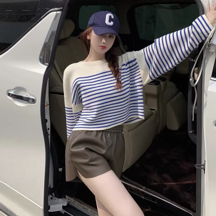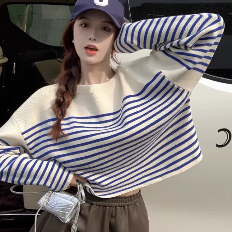 レディース トップス ニット セーター ショート 長袖 ワイド 切り替え オーバーサイズ バイカラー 配色 中厚手 柔らか 大人可愛い カジュアル おしゃれ レトロ こなれ感 ラフ メンズライク ボーイッシュ スポーティー ルーズ 存在感 抜け感 カレッジ風 学生風 アクティブ 休日感 ストリート 大人女子 お茶目 リラックス ボーダー 秋 冬 お出かけ アウトドア 旅行 海 休日 ショッピング カフェ レジャー 楽ちん 体型カバー 普段使い 着回し トレンド 定番 S M ゆったり ホワイト ブルー