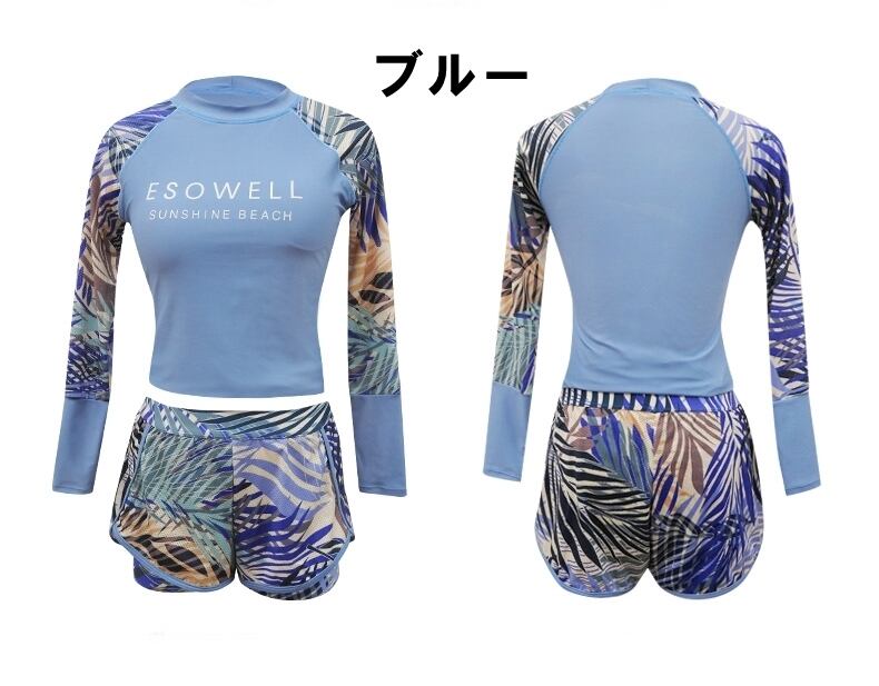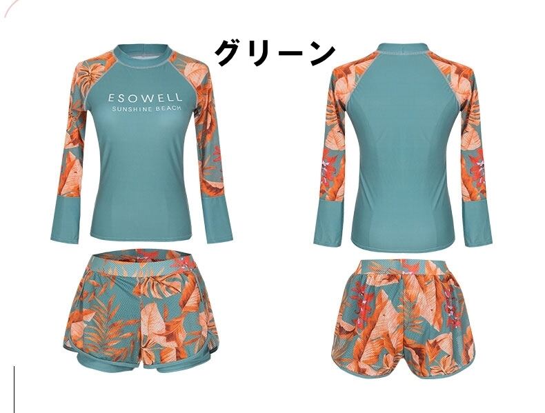水着 レディース 送料無料 4色 M L XL 2XL ビキニセット 2点セット 上下セット 夏 海 プール ビーチ リゾート ラッシュガード 長袖 クロップド丈 花柄 ボタニカル 植物 パイピング 切り替え シンプル タンキニ 体型カバー 10代 20代 30代 40代 おしゃれ 上品 大人 きれいめ ハイウエスト 脚長 グリーン ネイビー ブルー ブラック