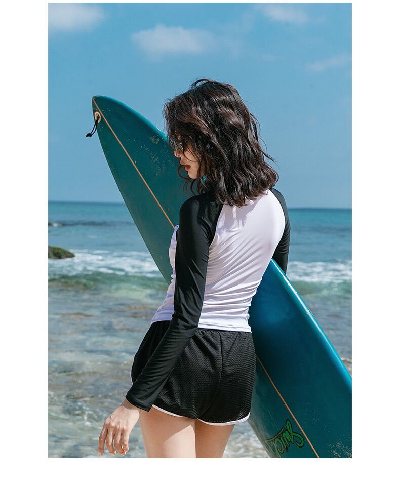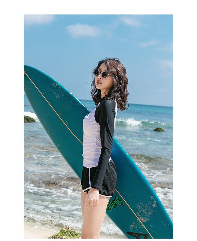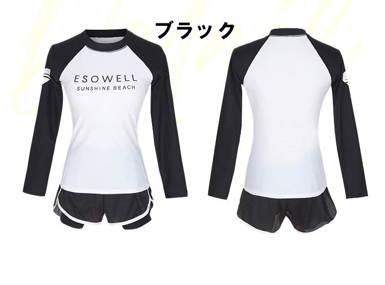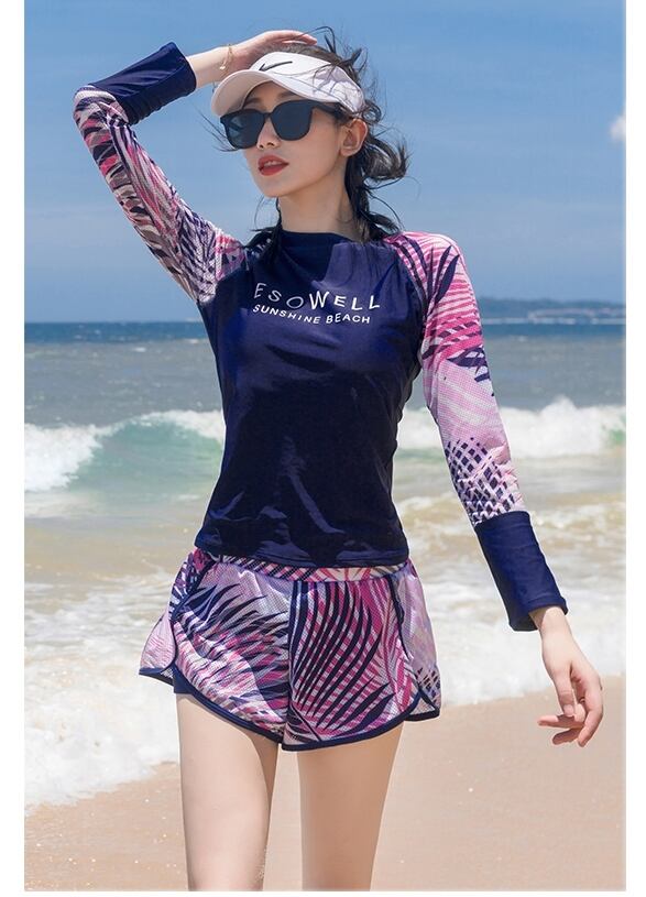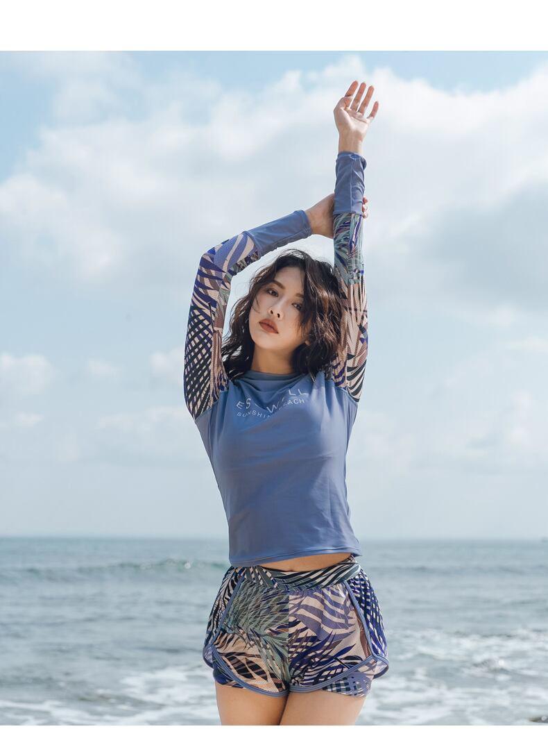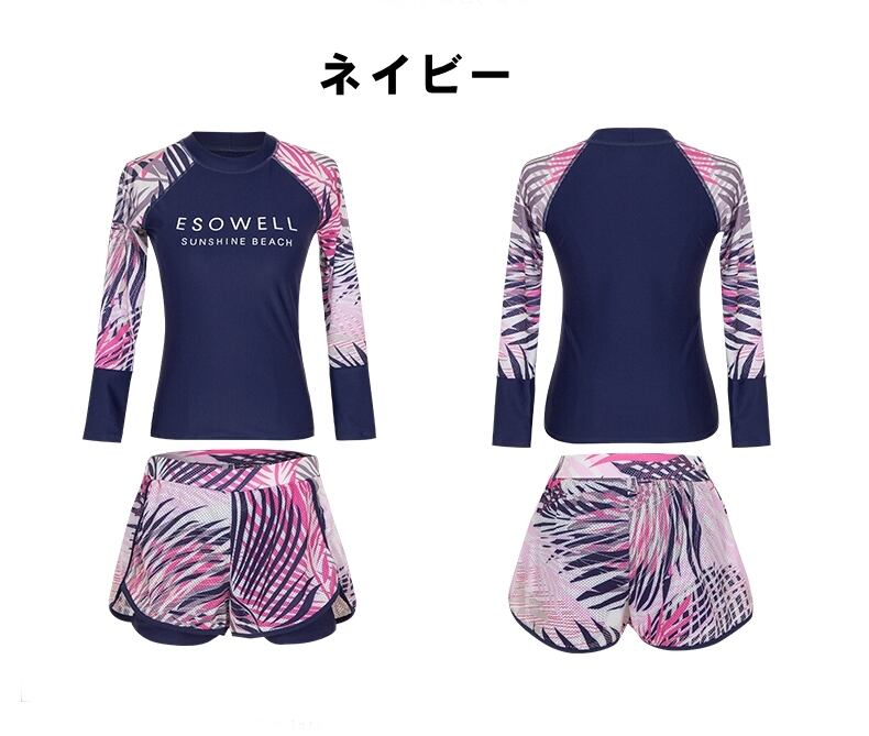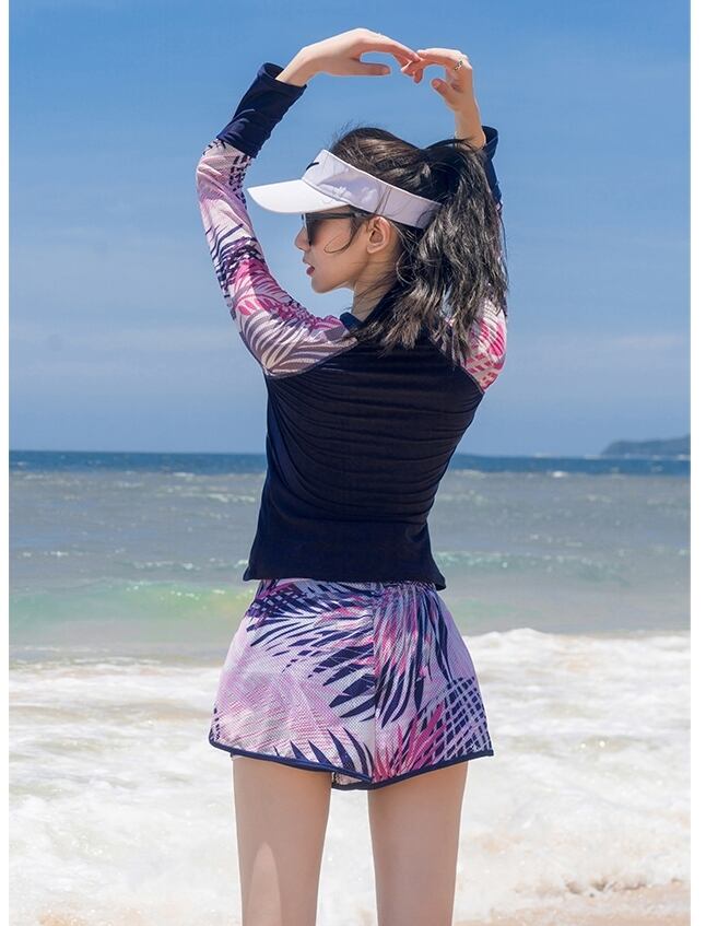 長袖のラッシュガード風に使えるおしゃれな水着セットです。