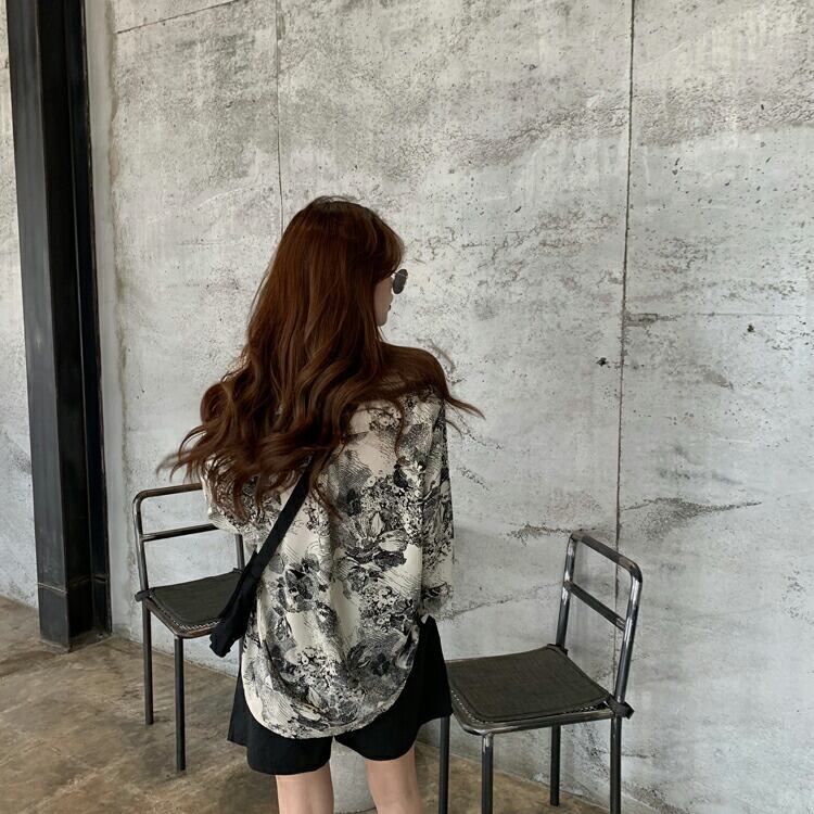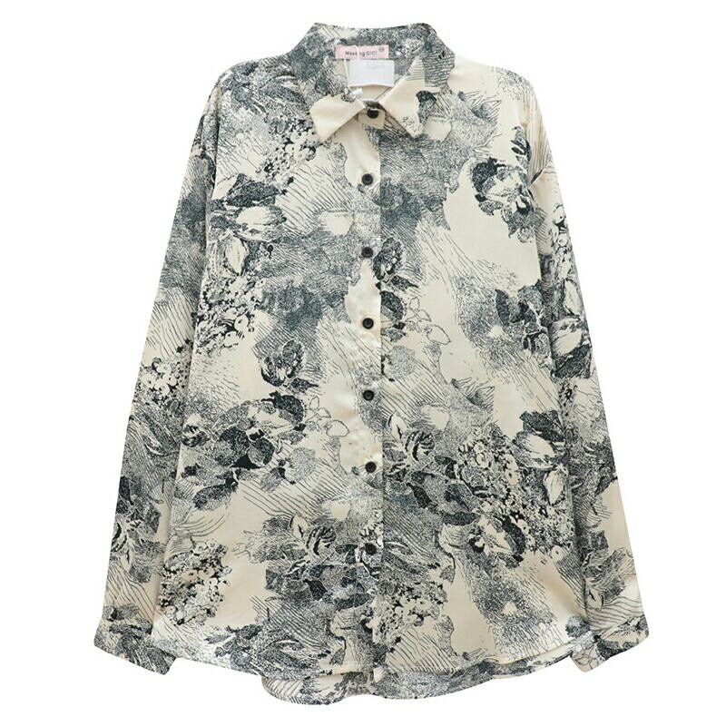 抜け感のある淡い花柄パターンがシックなブラウスです。