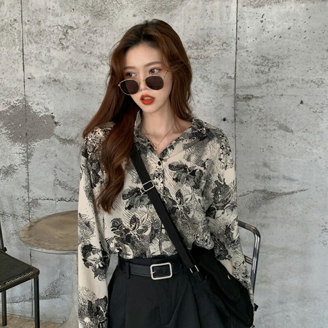 トップス レディース 送料無料 ブラウス シャツ Vネック 長袖 花柄 アジアン ボタニカル 単色 こなれ感 抜け感 ガーリー かわいい 可愛い 通気性 キュート 上品 エレガント きれいめ ラブリー 女の子 お洒落 おしゃれ 春 春服 夏 夏服 10代 20代 デート おでかけ モテ 女子会 普段使い 着回し 重ね着 定番 韓国系 オルチャン ブラック S M L XL