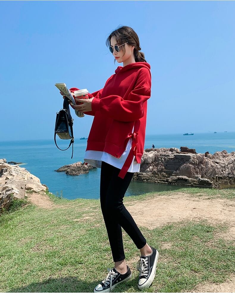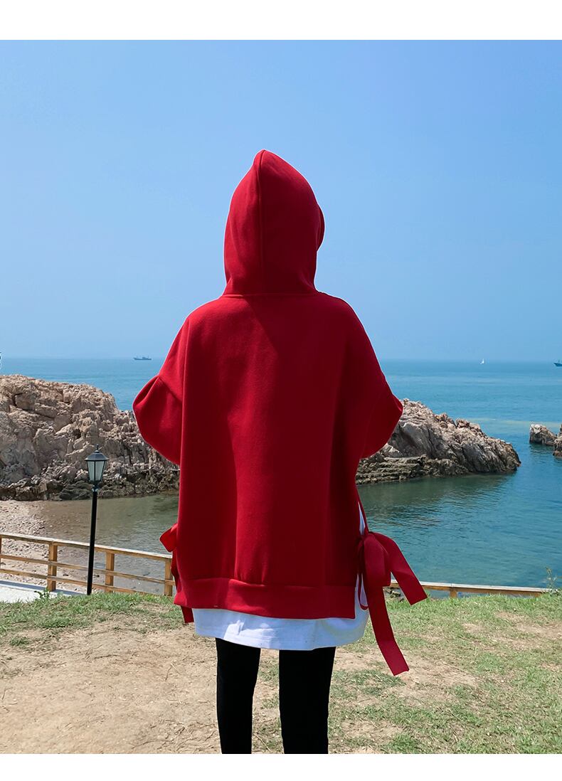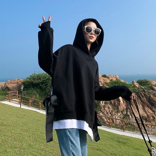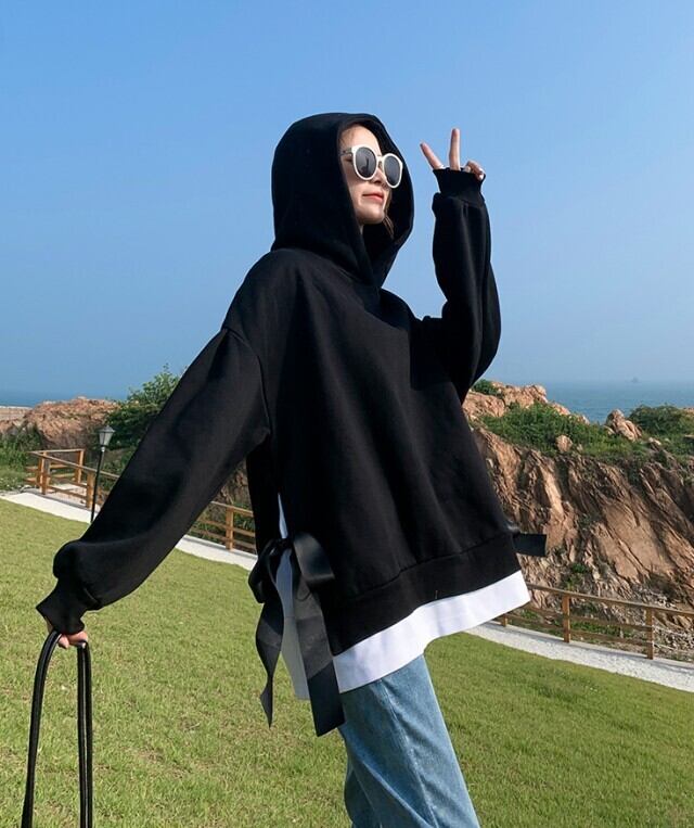 トップス レディース 送料無料 2色 パーカー リブニット フェイクツーピース リボン アンサンブル フード付き ロゴ 長袖 ワイド オーバーサイズ ビッグサイズ オーバーシルエット ビッグシルエット ゆったり ゆる 大きいサイズ プラスサイズ カジュアル ラフ おしゃれ お洒落 カッコイイ かっこいい こなれ感 シンプル マニッシュ ボーイッシュ メンズライク レッド ブラック M L XL 2XL 着回し 普段使い 重ね着 お揃い デート おでかけ 10代 20代