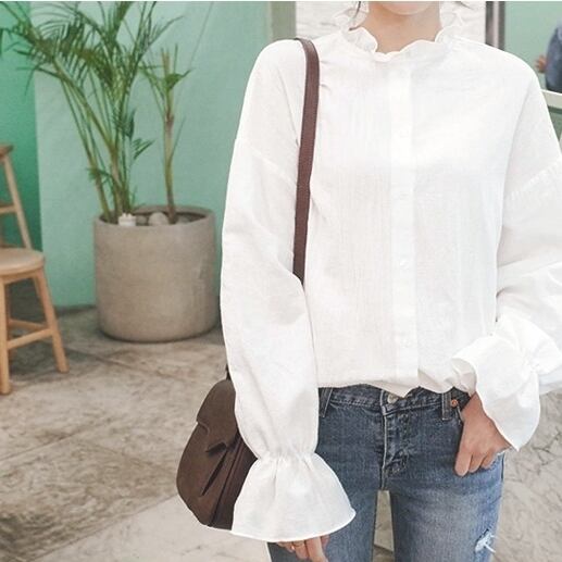 トップス レディース 送料無料シャツ フリル スタンドカラー パフスリーブ キャンディースリーブ ブラウス フレアスリーブ 長袖 シワ加工 ワッシャー パフスリーブ おしゃれ スタイル 体型カバー きれいめ エレガント クラシカル フェミニン オフィス 通勤 OL お出かけ リゾート キュート ガーリー かわいい 上品 レース ナチュラル ロマンチック ブラウス フェミニン フラワーレース ホワイト S M L XL 2XL