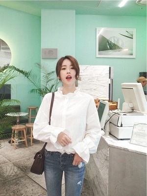 くしゅっとしたシワ感がこなれたフリル袖ブラウス。