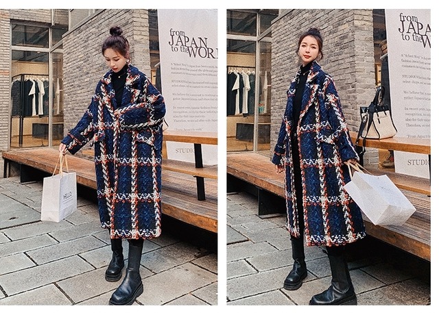 レトロなチェックパターンとボリューム感がメンズライクで可愛いロングコートです。