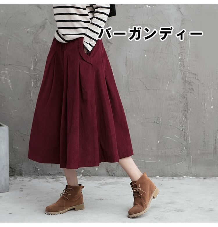 スカート レディース ボトムス 送料無料 6色 ボトムス コーデュロイ フレアスカート ひざ下 ミモレ丈 ハイウエスト ウエストゴム 大人可愛い きれいめ 上品 レトロ 大人女子 こなれ感 キュート ガーリー エレガント とろみ インスタ映え 春 秋 冬 大人 かわいい おしゃれ 普段使い デイリー お呼ばれ お出かけ デート オフィス 通勤 通学 旅行 パーティー 二次会 ブラック バーガンディーネイビー グレー グリーン ブラウン M L XL