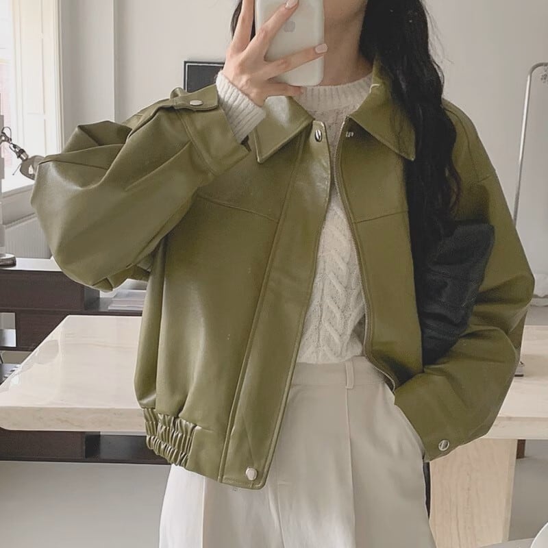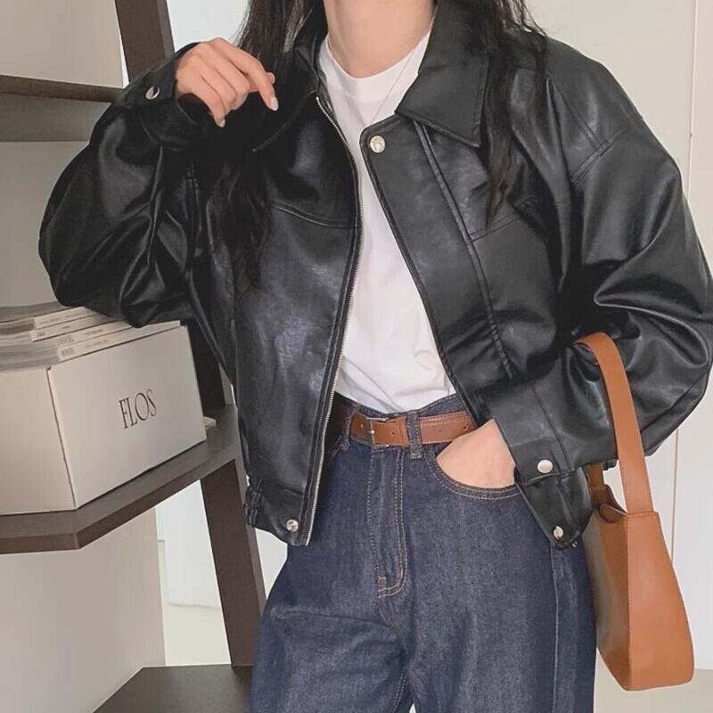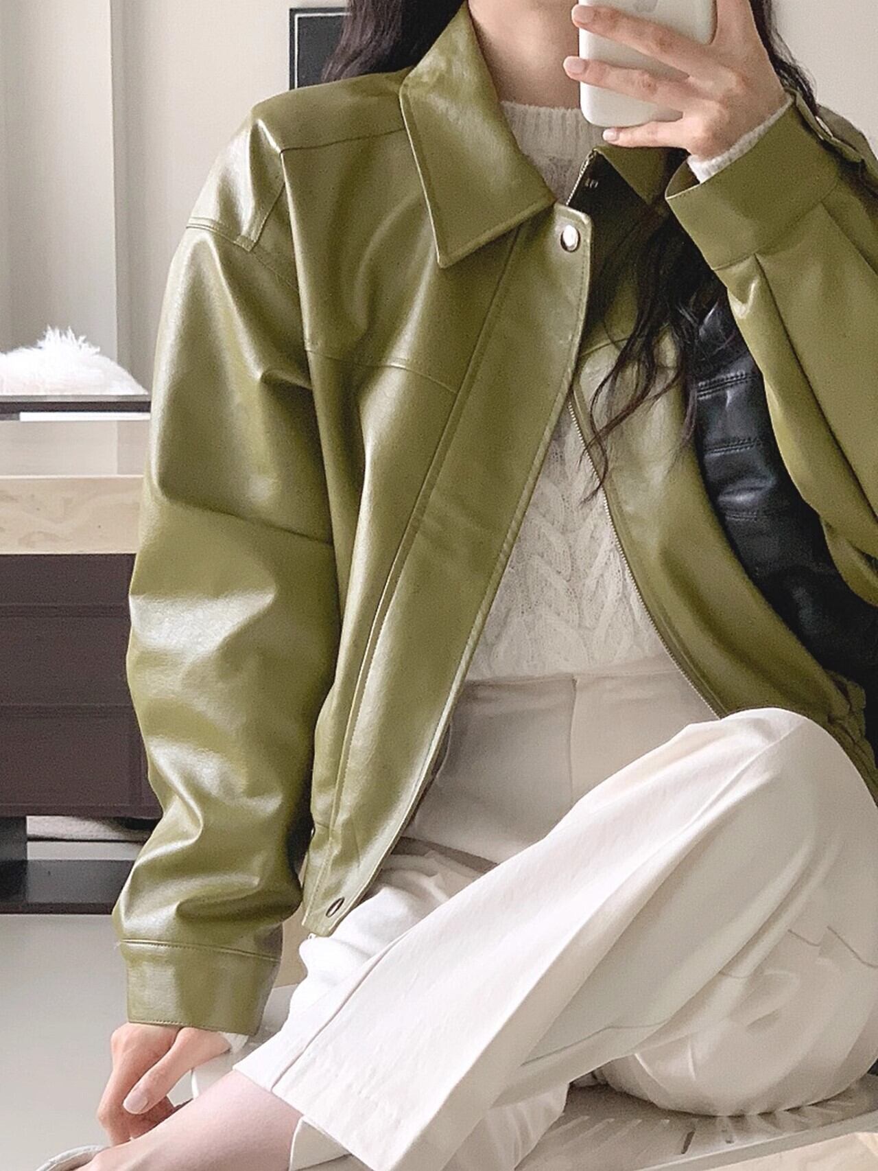 レディース トップス ジャケット アウター 上着 レギュラー丈 長袖 襟付き ワイド オーバーサイズ フェイクレザー シンプル カジュアル おしゃれ かっこいい レトロ こなれ感 ラフ メンズライク ボーイッシュ ルーズ 存在感 抜け感 ヴィンテージ 都会的 ラグジュアリー アメリカン アクティブ ワイルド 休日感 ストリート 大人女子 活発 無地 秋 冬 お出かけ アウトドア 旅行 休日 ツーリング レジャー 重ね着 オルチャン 楽ちん 体型カバー 普段使い 着回し トレンド ゆったり フリーサイズ