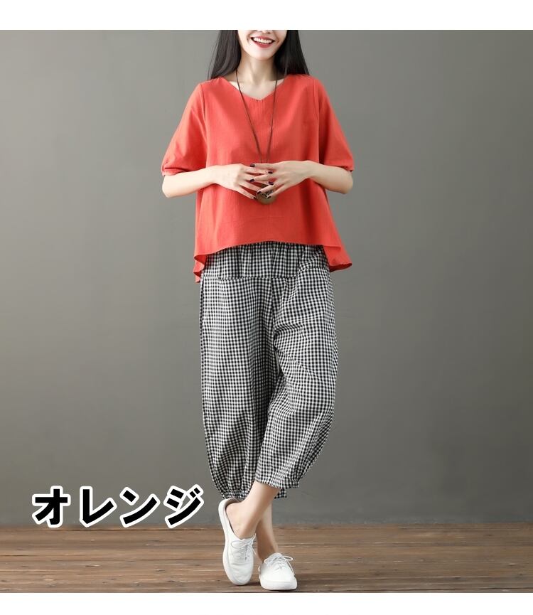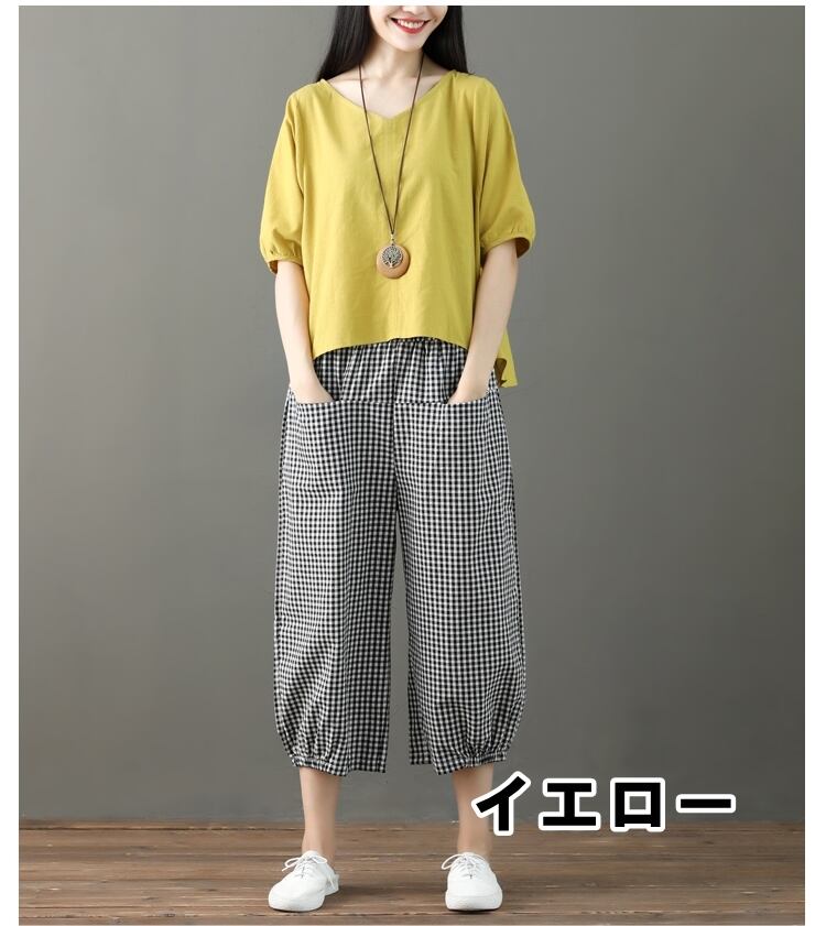 セットアップ ブラウス パンツ 半袖 送料無料 Vネック アンクル丈 ギャザー プルオーバー ギンガムチェック 可愛い エレガント 無地 春 夏 秋 ガーリー 10代 20代 30代 大人 学生 お出かけ 外出 きれいめカジュアル 着回し ファッション デート コーディネート 重ね着 休日 特別な日 お祝い 記念日 メンズウケ カジュアル 普段着 春コーデ 夏コーデ おしゃれ シンプル スタイル ゆったり 細見せ ママコーデ オレンジ イエロー ホワイト ブラック M L XL 2XL 3XL