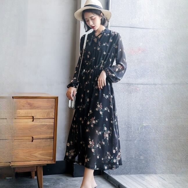 ワンピース レディース 送料無料 花柄 シフォン ドレス フリルネックシフォン花柄ワンピース スタンドカラー キーネック シアーフラワーワンピース ひざ下 ミモレ丈 長袖 シフォン フリル リボン エレガント 大人可愛い きれいめ 華やか 上品 レトロ 花柄 小花柄 フラワー オケージョン モテ 高見え 春夏 秋冬 大人 かわいい おしゃれ 普段使い デイリー お呼ばれ お出かけ デート オフィス 通勤 通学 パーティー 二次会 ブラック M L XL 2XL