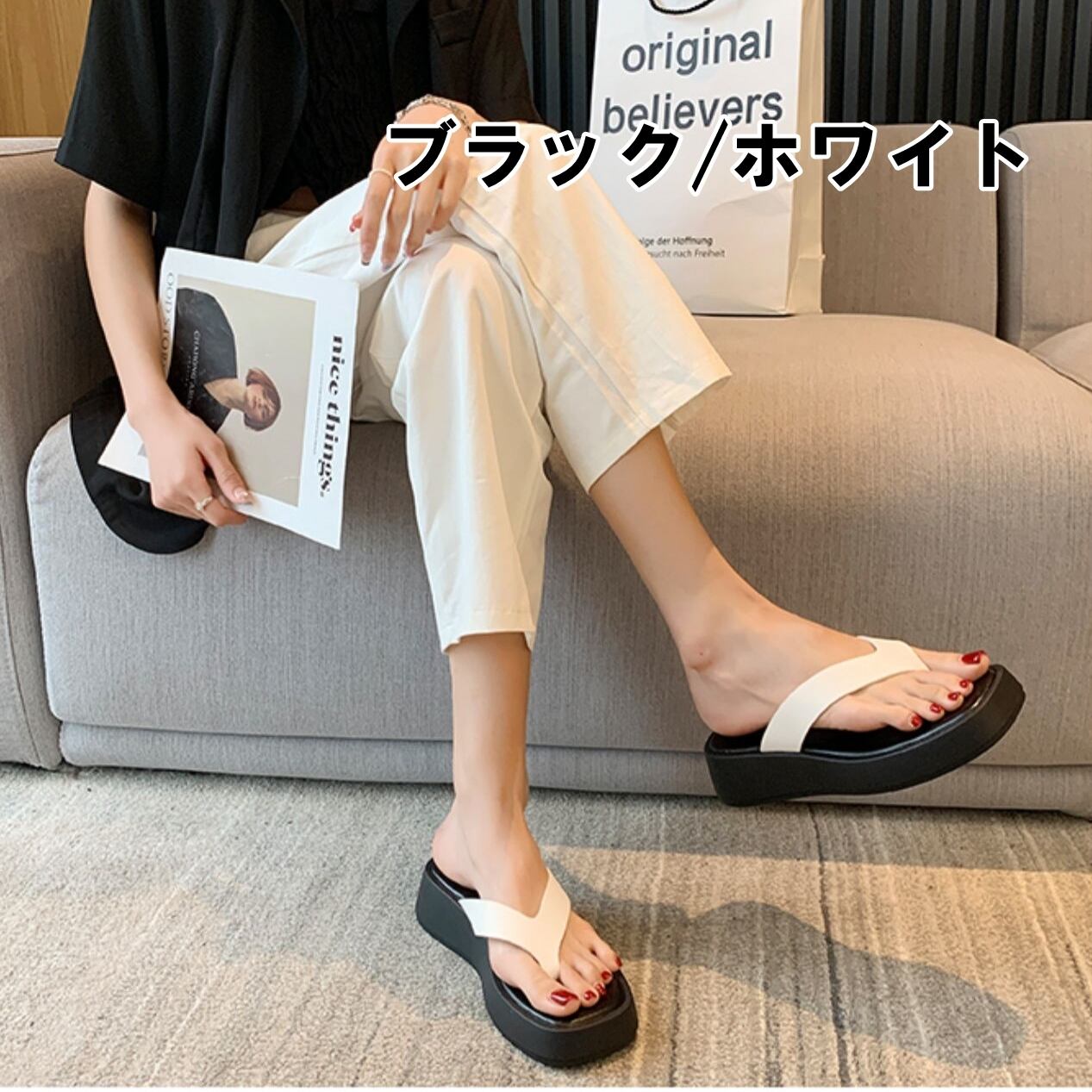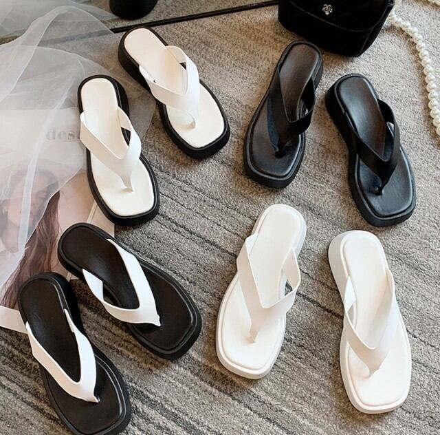 サンダル レディースシューズ 4.5cmヒール 厚底 オープントゥ 歩きやすい 鼻緒 フェイクレザー 大人可愛い シンプル カジュアル おしゃれ お洒落 かっこいい レトロ キュート 大人っぽい ラフ 個性的 存在感 抜け感 アクティブ 無地 夏 10代 20代 30代 40代 レディース 女性用 お出かけ 休日 アウトドア イベント リゾート 旅行 海 プール 普段使い 韓国系 トレンド ホワイト ブラック 22.5cm 23.0cm 23.5cm 24.0cm 24.5cm 25.0cm