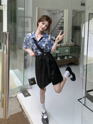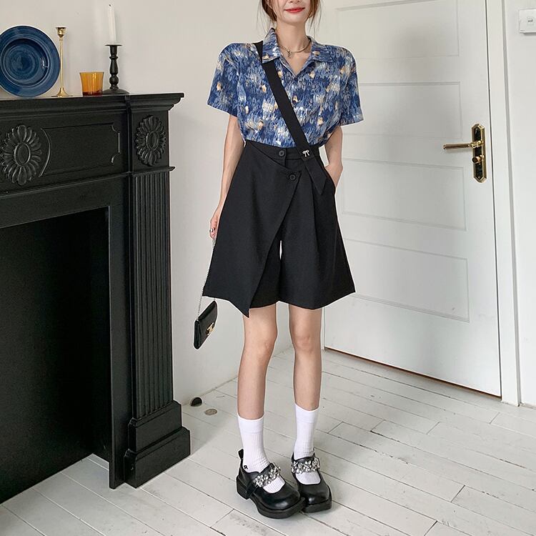 トップス レディース 送料無料 シャツ ブラウス 半袖 襟付き 開襟シャツ 抽象画 総柄 ゆったり ビッグシルエット オーバーサイズ マニッシュ メンズライク 抜け感 こなれ感 シック クール 個性的 華やか 派手 無地 春 秋 10代 20代 普段使い 重ね着 着回し おしゃれ お洒落 ラフ カジュアル 前開き 涼し 通気性 薄手 ポリエステル シフォンシャツ ワイド 存在感 モード系 エキゾチック デート ブルー S M L XL 2XL