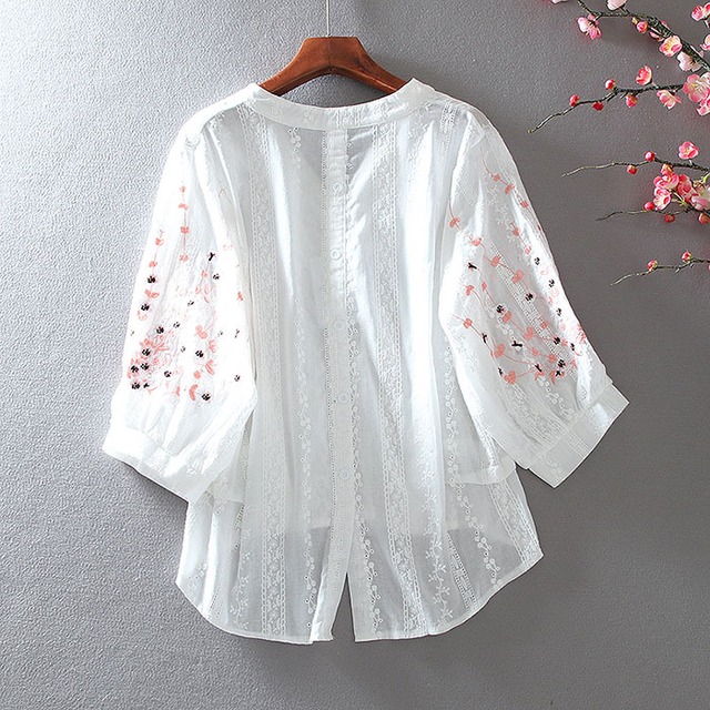 ふんわり袖のアジアンテイストの刺繍が華やかなデザイン。