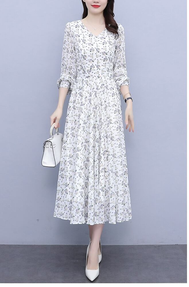 ワンピース レディース 送料無料 ドレス フレアワンピース 花柄 フラワー Vネック パフスリーブフレアロングワンピース ひざ下 ミモレ 長袖 ボリューム袖 ハイウエスト エレガント 大人可愛い きれいめ ナチュラル 華やか 上品 レトロ キュート ガーリー 小花柄 ボタニカル プリント 体型カバー 二の腕カバー モテ 高見え インスタ映え 春夏 秋冬 大人 おしゃれ デイリー お呼ばれ お出かけ デート 通勤 通学 旅行 パーティー 二次会 トレンド ホワイト M L XL 2XL 3XL 4XL