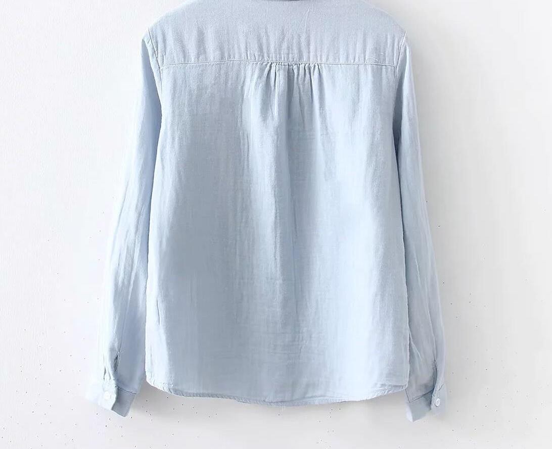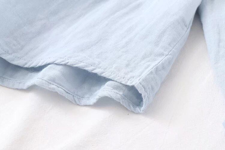 シンプルなダブルガーゼ仕立ての涼し気なシャツブラウスです。