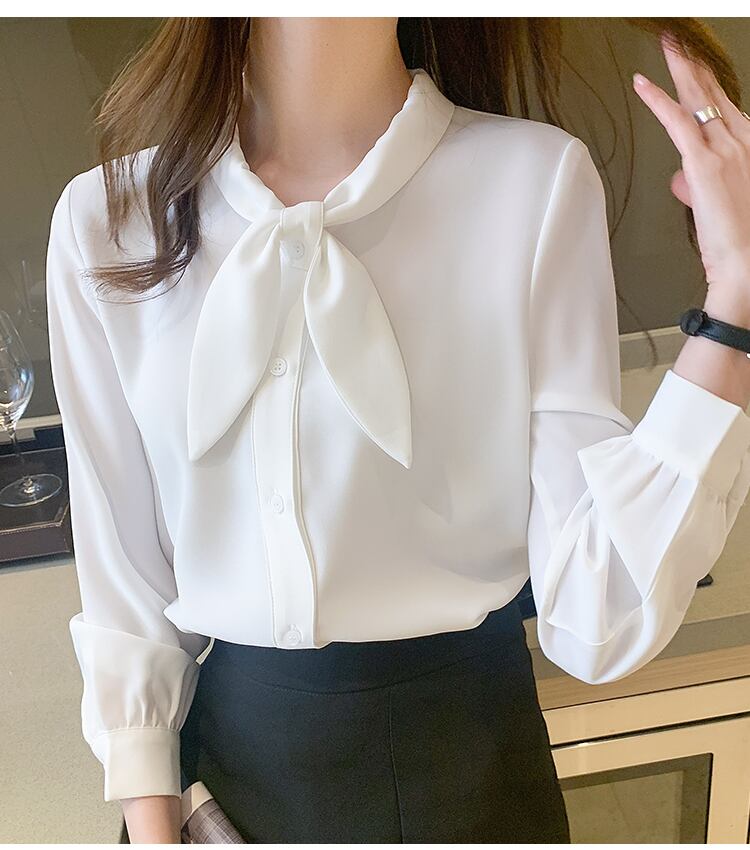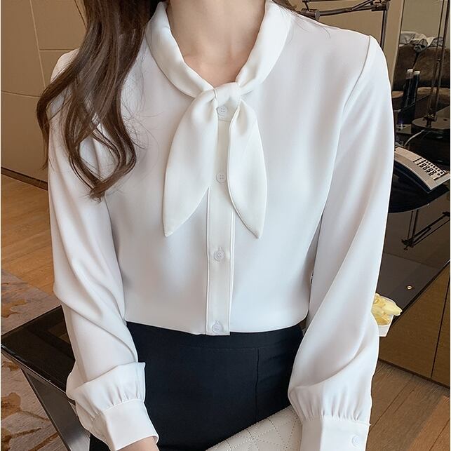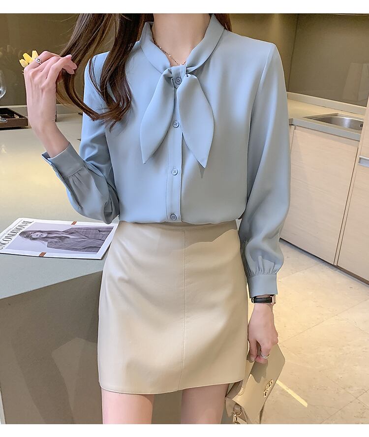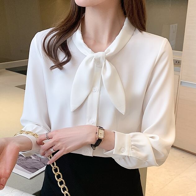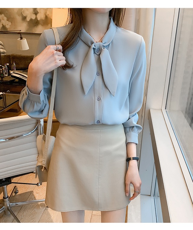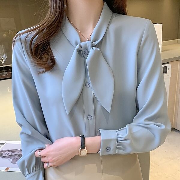 トップス レディース 送料無料 2色 シャツ ブラウス 長袖 襟付き スタンドカラー リボンタイ ビッグカラ— ゆったり 抜け感 こなれ感 シック クール カッコイイ かっこいい 個性的 華やか 派手 無地 春 春服 春物 秋 秋服 秋物 10代 20代 普段使い 重ね着 着回し おしゃれ お洒落 ラフ カジュアル 前開き ホワイト ブルー S M L XL 2XL 涼し 通気性 薄手 ポリエステル シフォン シフォンシャツ ワイド 存在感 モード系 デート