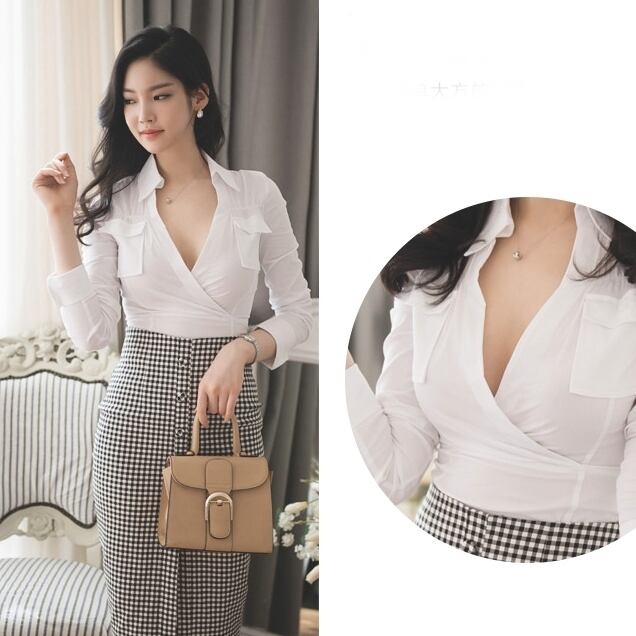 キモノトップス風のモダンなカシュクールブラウスです。