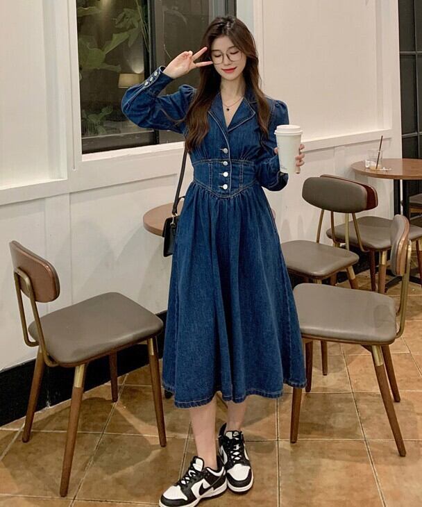 デニムワンピース レディース ロングワンピース 長袖 ミモレ丈 送料無料 シャツワンピース ビッグシルエット パワーショルダー ボタン ウエストマーク レトロ 大人可愛い かわいい きれいめ 大人女子 エレガント 肌見せ 春 ガーリー 韓国系 お出かけ 外出 きれいめカジュアル 着回し ファッション デート コーディネート 重ね着 休日 特別な日 お祝い 記念日 普段着 春コーデ 夏コーデ スタイル ゆったり ファッション 30代 リゾート ママコーデ S M L XL 2XL 3XL 4XL