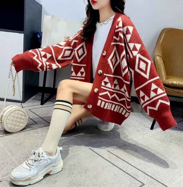 カーディガン 送料無料 2色 長袖 Vネック 幾何学模様 ノルディック柄 ビッグボタン ミディアム丈 大人可愛い かわいい きれいめ 大人女子 エレガントデコルテ 春 秋 冬 ガーリー 10代 20代 大人 学生 お出かけ 外出 きれいめカジュアル 着回し ファッション デート コーディネート 重ね着 休日 特別な日 お祝い 記念日 メンズウケ カジュアル 普段着 春コーデ 秋コーデ おしゃれ シンプル スタイル ゆったり 30代 ブラック レッド S M L XL 2XL オフィス ワンポイント