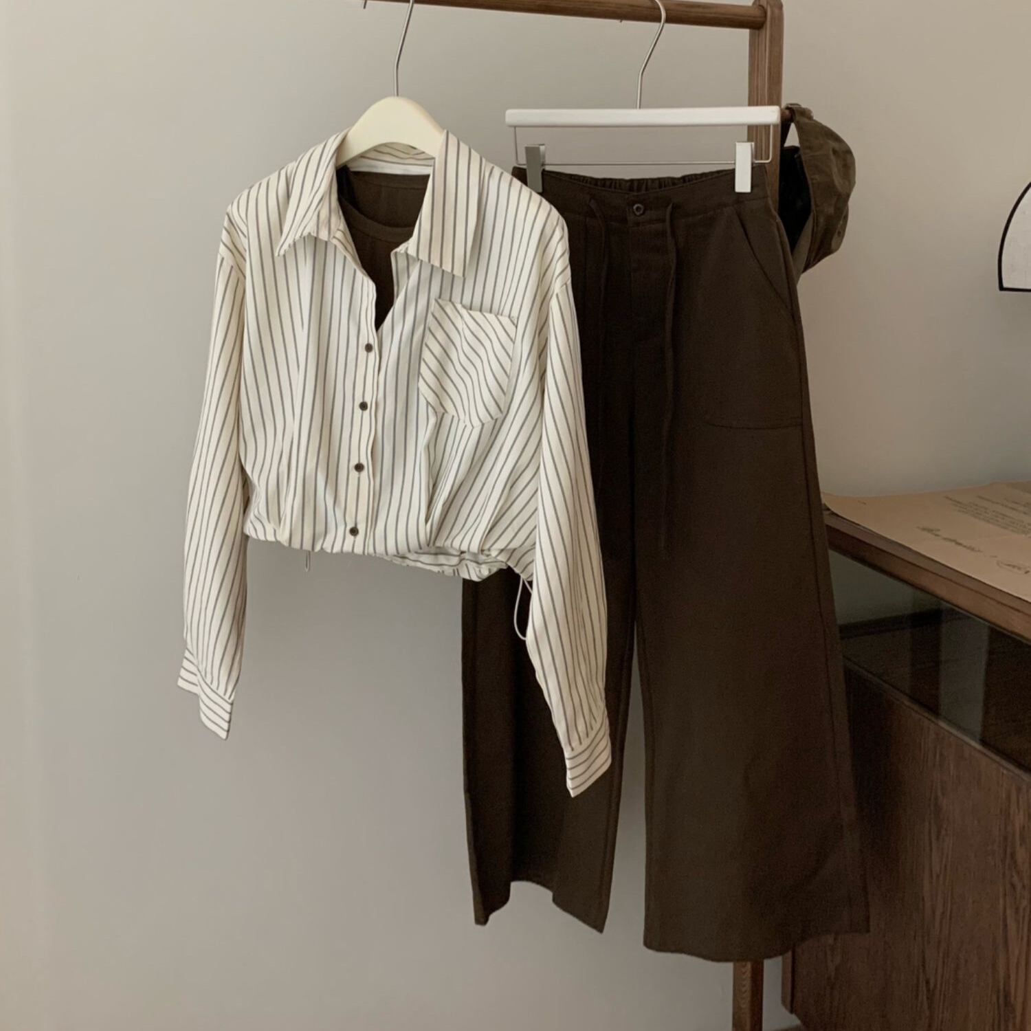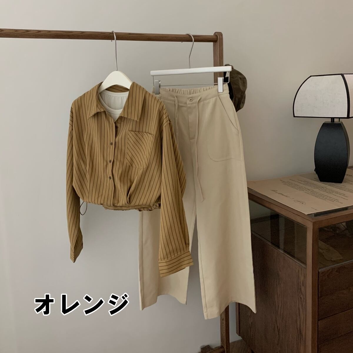 トップス レディース 送料無料 5色 シャツ ブラウス レギュラーカラー フェイクレイヤード キャミ ドロースリング長袖 襟付き フェイクレイヤード 重ね着 パフスリーブ ストライプ ゆったり 抜け感 こなれ感 シック クール かっこいい 個性的 華やか 派手 無地 春 春服 春物 秋 秋服 秋物 10代 20代 普段使い 重ね着 着回し おしゃれ お洒落 ラフ カジュアル 前開き 通気性 薄手 ポリエステル シ 存在感 モード系 デート グレー アプリコット オレンジ カーキ カーキグリーン