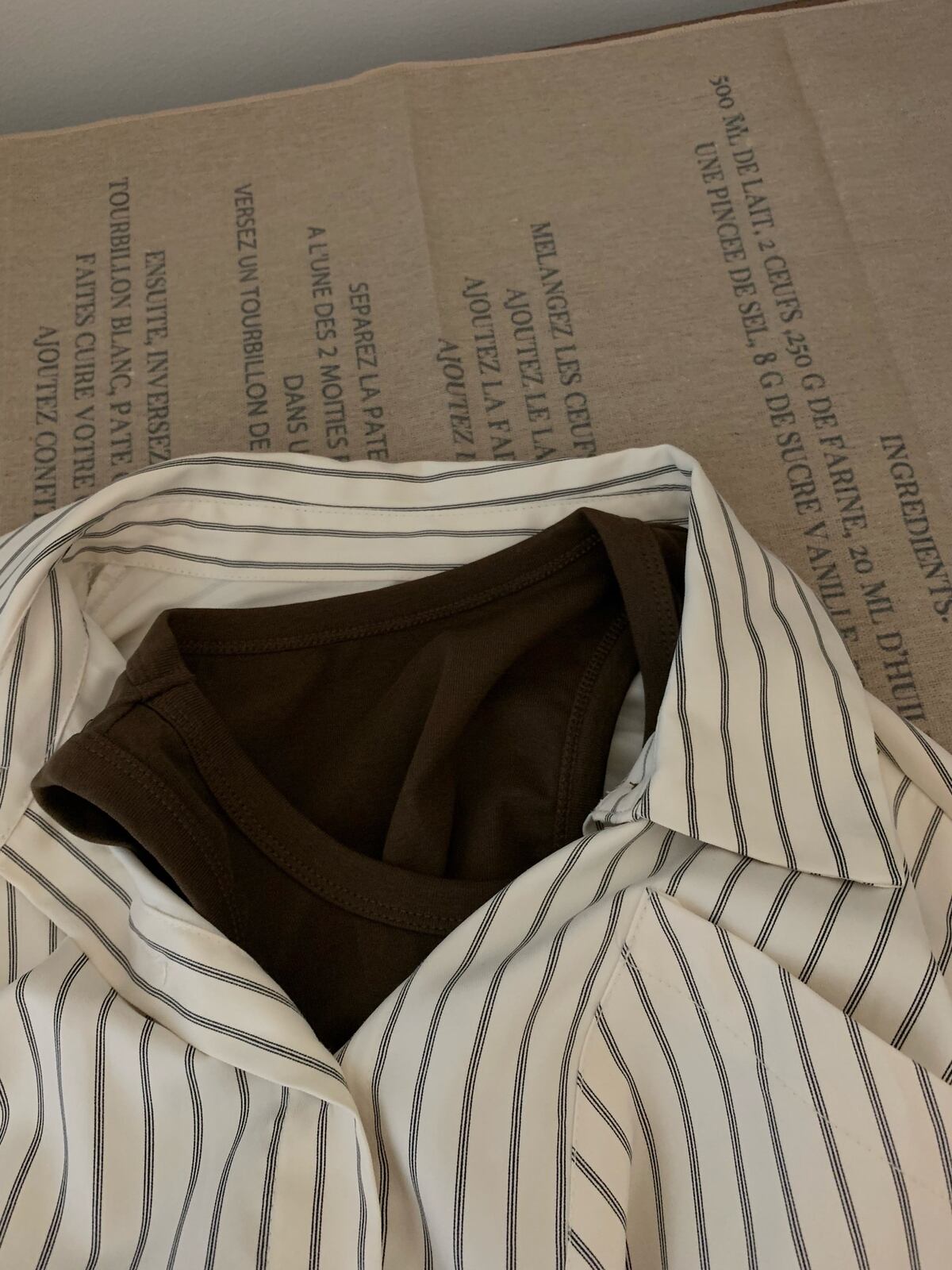 キャミソールを中に着たような便利なデザインで一枚でコーデが完成します。