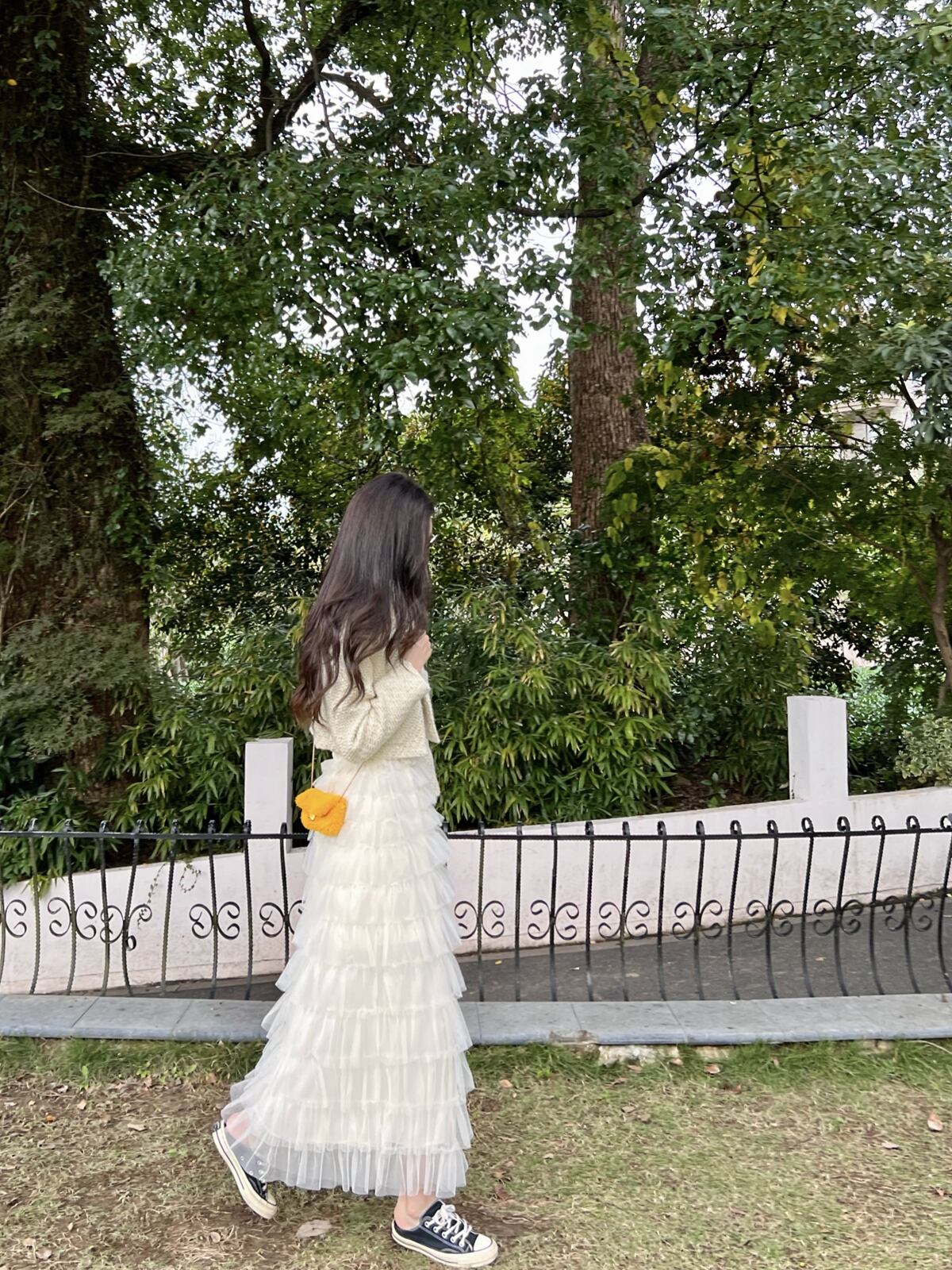 大人の魅力を引き立てるティアードスカートが存在感のあるセットアップ。