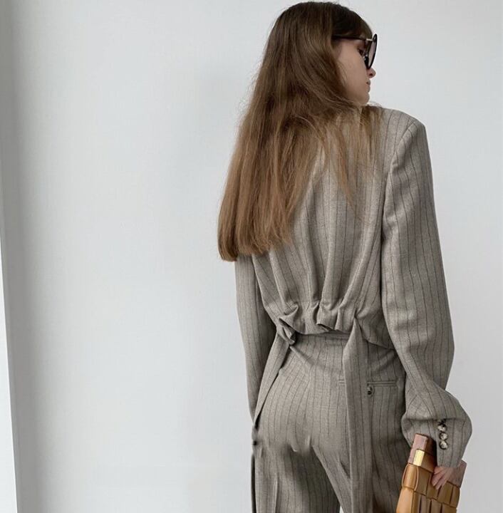 セットアップ パンツスーツ レディース ジャケット スーツ 送料無料 ストライプ ドローストリング 切り替え タック 上下セット パンツ スラックス オフィスカジュアル ビジネス 通勤 オールシーズ フォーマル ママコーデ セレモニー カジュアル きれいめカジュアル 大人女子 無地 春 秋 冬 大人 学生 韓国系 お出かけ 外出 着回し コーディネート 重ね着 休日 特別な日 記念日 普段着 シンプル 細見せ S M L XL グレー