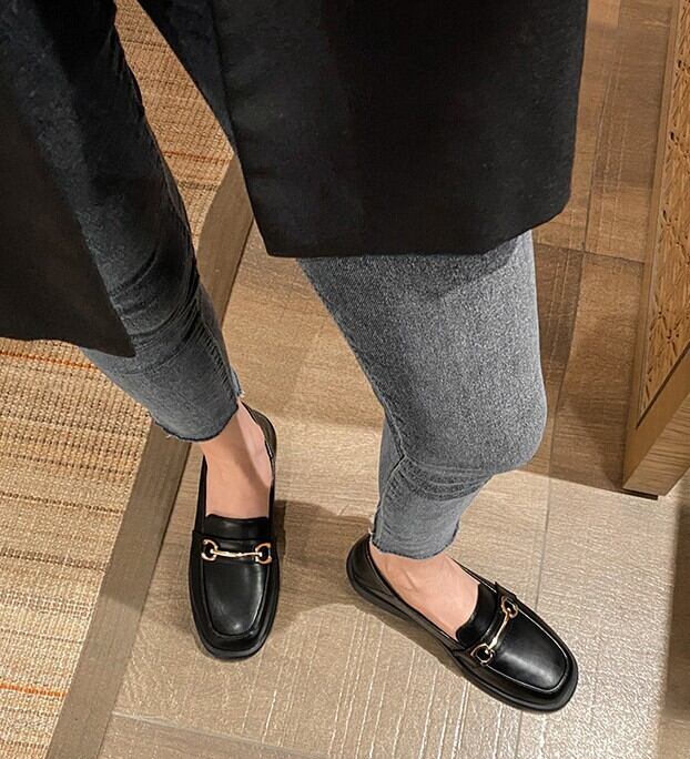 丸みのあるスクエアトゥがトレンドをおさえたフェイクレザーローファー