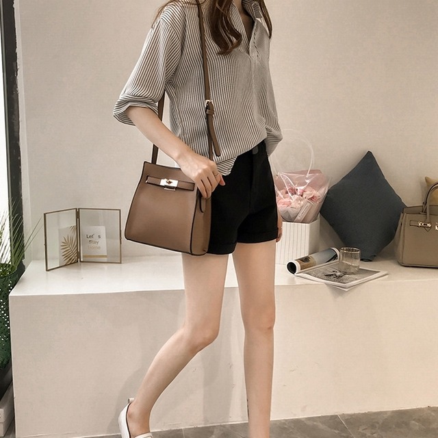 細めボーダーがオフィスにもカジュアルにも着まわせる便利なデザイン。