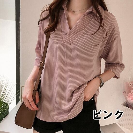 レディース トップス シャツ ブラウス 五分袖 襟付き Vネック ワイド オーバーサイズ レース 前開き ハリ感 大人可愛い きれいめ シンプル カジュアル 上品 おしゃれ レトロ こなれ感 ラフ ガーリー ルーズ 個性的 モダン 存在感 抜け感 ラブリー キュート ラグジュアリー カレッジ風 ロマンティック 休日感 ドレッシー フェミニン お茶目 ニッチ 無地 ストライプ 秋 冬 デート お出かけ イベント 休日 ショッピング カフェ 韓国 楽ちん 体型カバー 清楚 ゆったり ピンク ホワイト ブルー