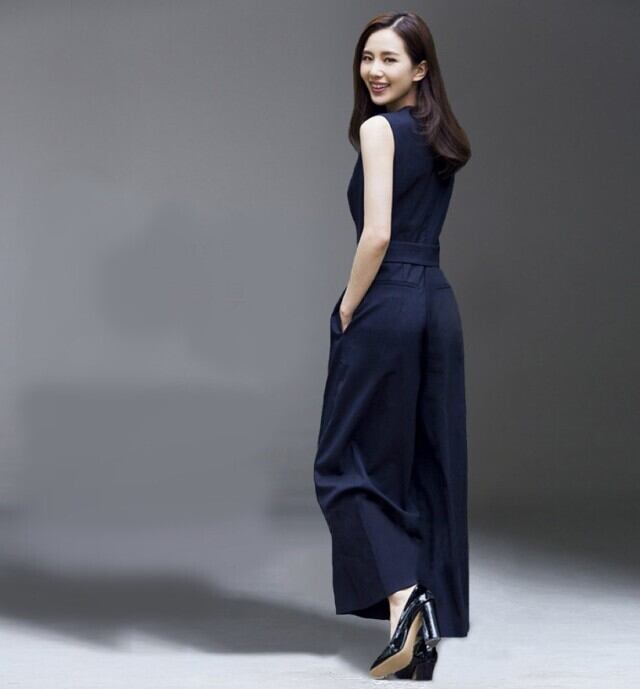 かっこいいパンツスタイルながらデコルテのデザインがフェミニンで可愛い♪