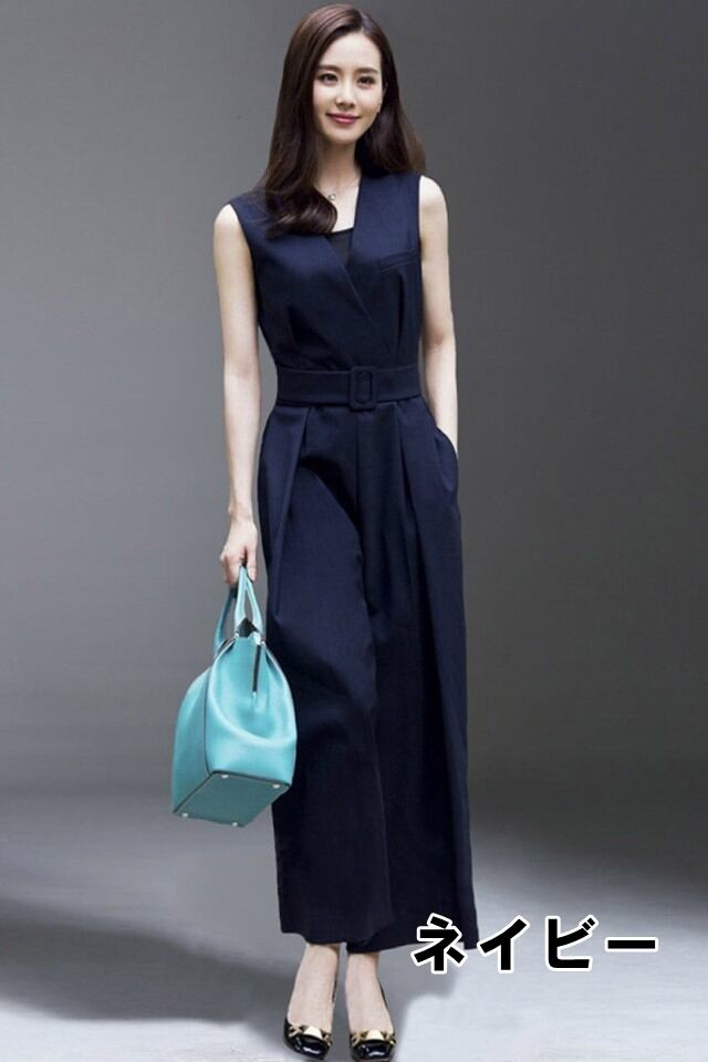 オールインワン パンツスーツ レディース 2色 ノースリーブ Vネック タック 送料無料 フリル ロンパース パーティ ベルト付き 大人可愛い かわいい きれいめ 大人女子 エレガント デコルテ 無地 春 夏 ガーリー お出かけ きれいめカジュアル 着回し ファッション デート コーディネート 重ね着 休日 特別な日 お祝い 記念日 カジュアル シンプル スタイル オフィスカジュアル 10代 20代 30代 ブラック ネイビー S M L XL 2XL