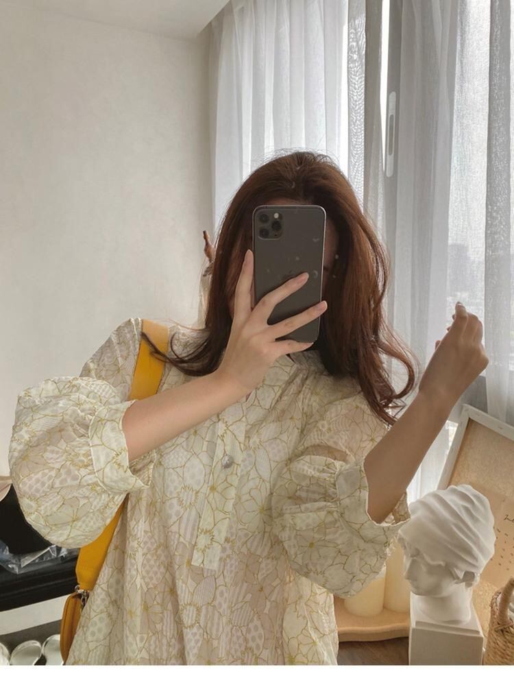 透け感が爽やかな大花柄レースのシャツワンピース。