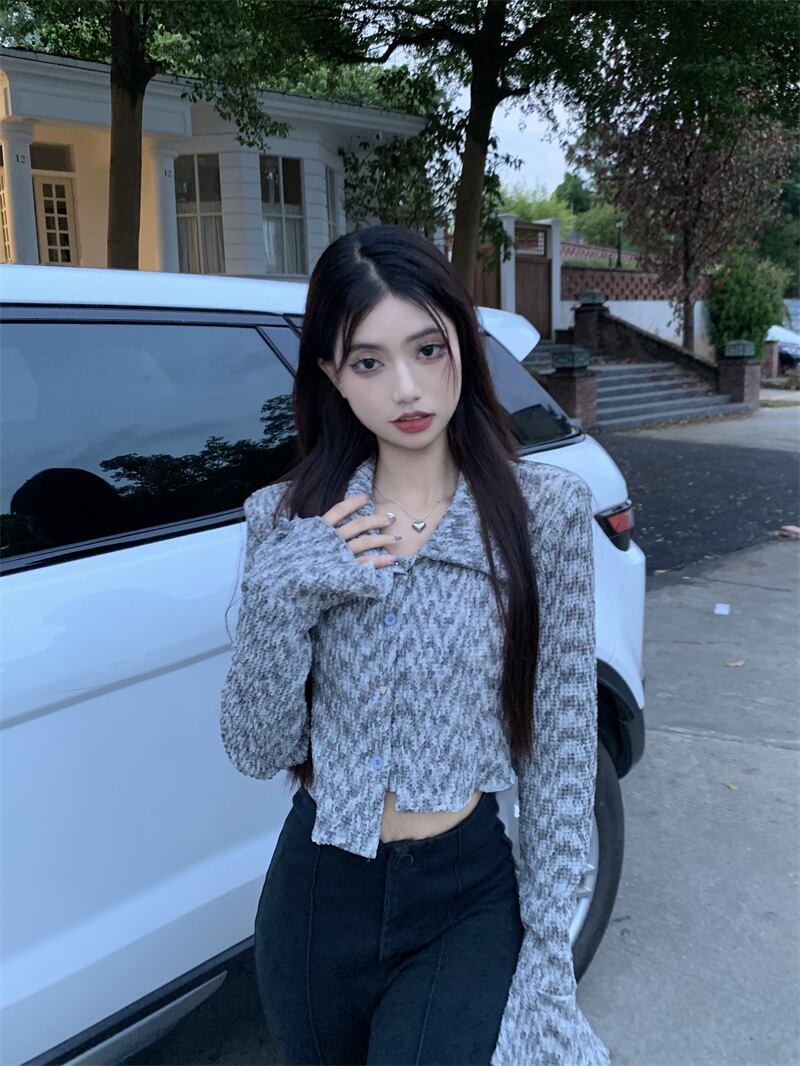 トップス レディース 長袖 2色 カーディガン リブ 短め ショート丈 イレギュラーヘム パフスリーブ ジャガード カーディガン クロップド丈 ショート丈 セクシー アシンメトリー ジャガード フレアスリーブ 襟付き Vネック 可愛い 大人 おしゃれ お出かけ ランチ 女子会 お泊り デート 休日 運動 スポーツ1 0代 20代 30代 40代 カッコいい ベーシック タイト きれいめ グレー ピンク ワンサイズ 送料無料