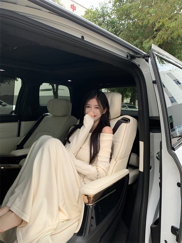 オフショルダーのセクシーなロングフレアドレスワンピース。