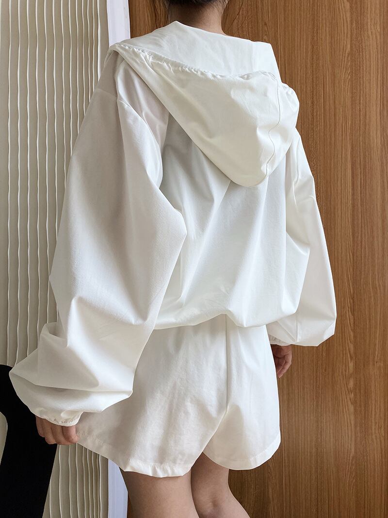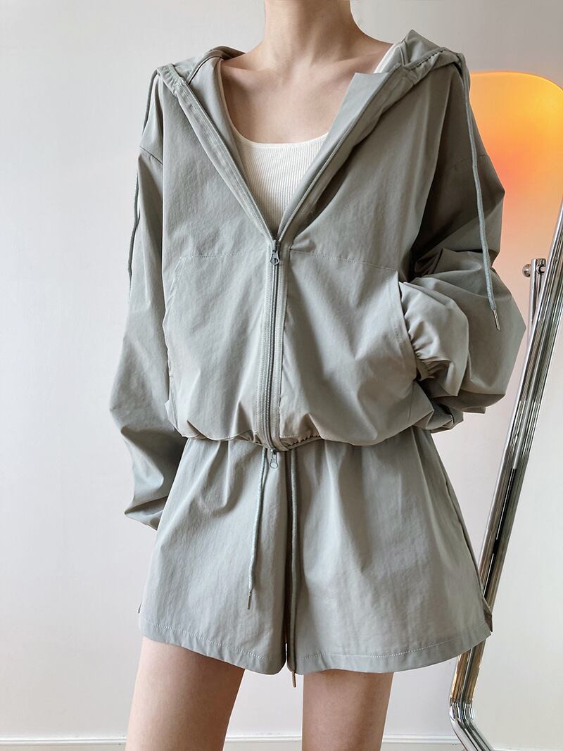 フードやスリット入りのショートパンツがこなれた印象でお洒落を楽しめます。