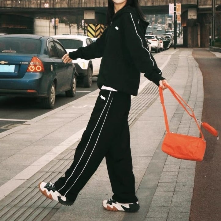 サイドラインとワンポイント刺繍が定番のスポーティーセットアップ。