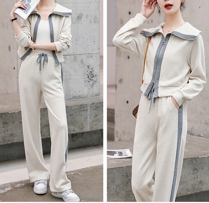セットアップ ジャケット パンツ レディース ニット 長袖 3色 2点セット 上下セット ジャージ サイドライン バイカラー ジップ タック ジップアップ ジャンパー ロング ワイド スポーツウェア スポーティアイテム 送料無料 大人可愛い かわいい きれいめ 大人女子 無地 春 夏 秋 冬 10代 20代 30代 学生 お出かけ カジュアル 着回し ファッション 重ね着 休日 メンズウケ カジュアル 普段着 春コーデ おしゃれ シンプル スタイル ゆったり 細見せ グレー ピンク ベージュ