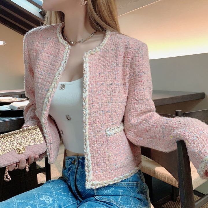 アウター レディース 送料無料 ジャケット ツイード ノーカラー ループ ショート丈 長袖 縁取り パイピング トリム 起毛 カラフル メタルボタン クルーネック トラッド 襟なし インスタ トレンド 羽織 フェミニン パイピング モノトーン かわいい きれいめ かっこいい おしゃれ 小顔見せ 着?せ 体型カバー オフィス 通勤 OL 女子会 お出かけ イベント パーティー お呼ばれ ゆったり モテ デート レトロ ピンク S M L