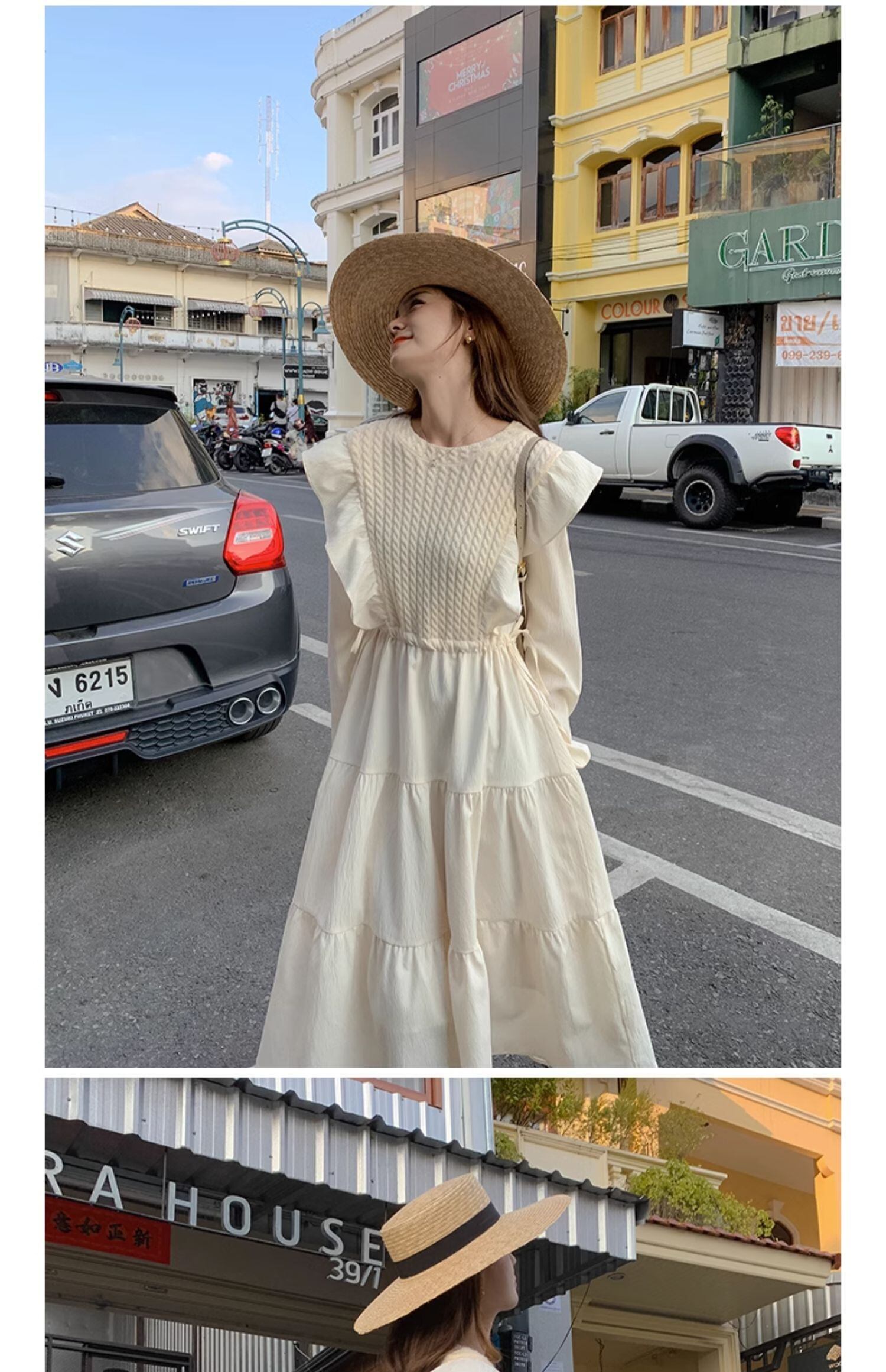 ワンピース レディース 送料無料 ミモレ丈 ブラウス ドッキング ティアード フリル ニット ベスト スリット 異素材ミックス 切り替え バイカラー クルーネック 長袖 ウエストマーク Aライン ワイド 無地 ゆったりリラックス 体型カバー シンプル ラフ カジュアル シック 大人女子 大人 きれいめ こなれ感 おしゃれ お洒落 ルーズ 春 秋 冬 普段使い 着回し おでかけ 休日 デイリー ホワイト S M L XL 10代 20代 30代 40代 コーディネート 涼し 通気性