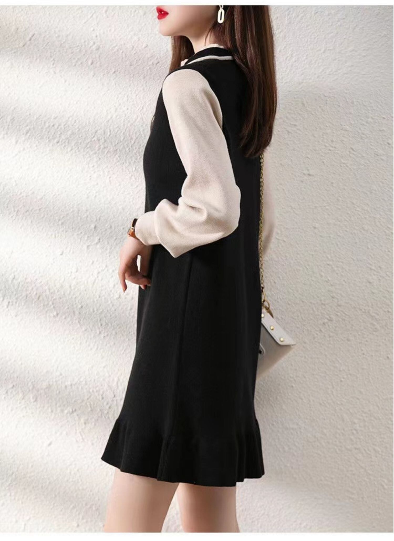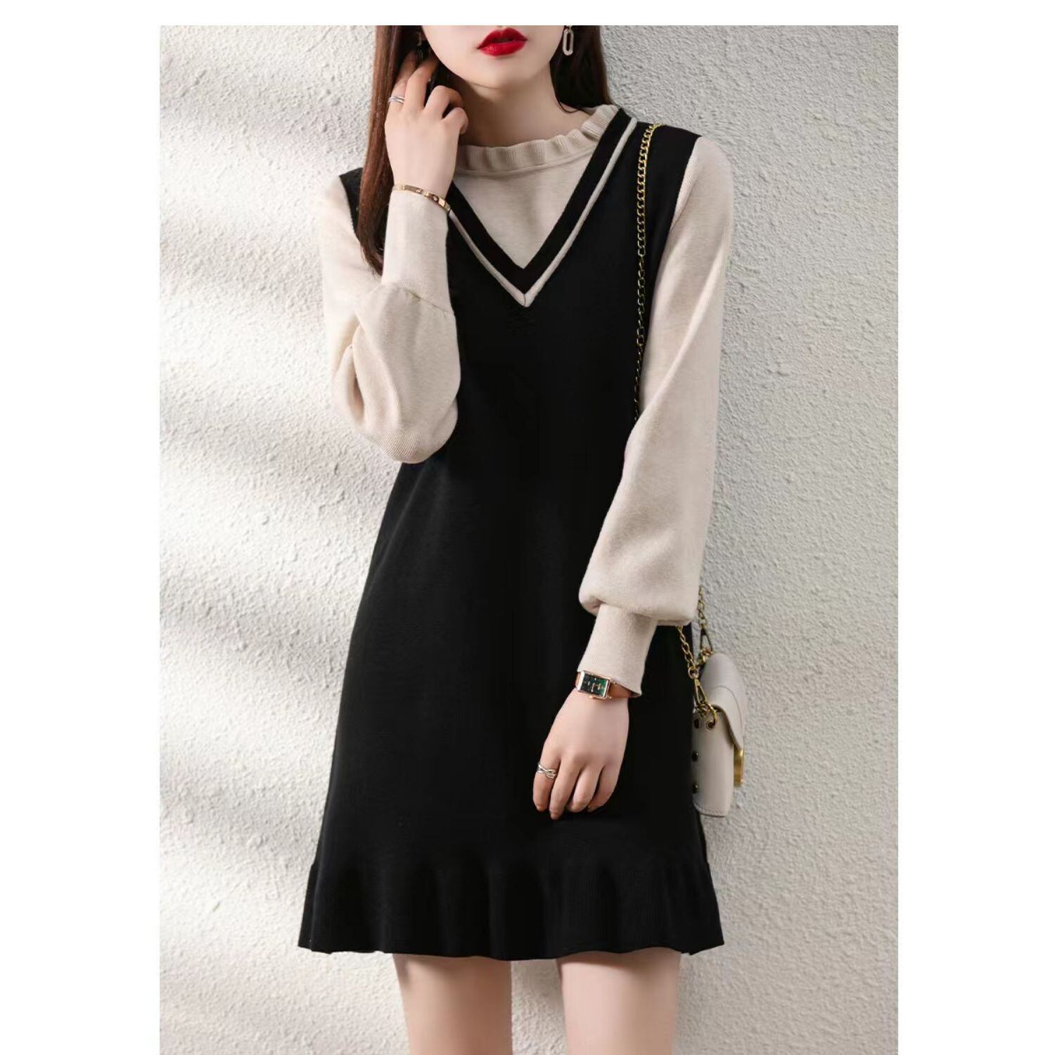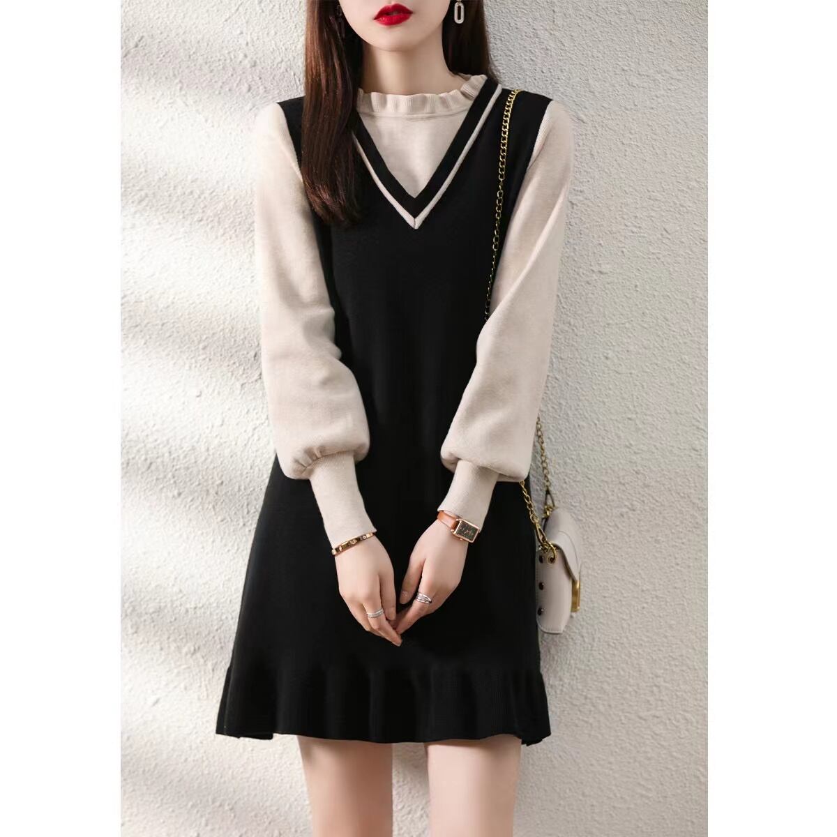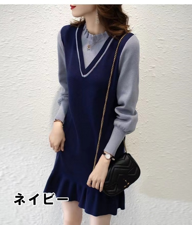 ワンピース レディース 送料無料 2色 ミニ丈 ドッキング ニット 起毛 スタンドカラー フリル ロングカフス 異素材ミックス 切り替え バイカラー パフスリーブ 長袖 Aライン ワイド 無地 ゆったりリラックス 体型カバー シンプル ラフ カジュアル シック 大人女子 大人 きれいめ こなれ感 おしゃれ お洒落 ルーズ 春 秋 冬 普段使い 着回し おでかけ 休日 デイリー ブラック ネイビー S M L XL 2XL 10代 20代 30代 40代 50代 コーディネート