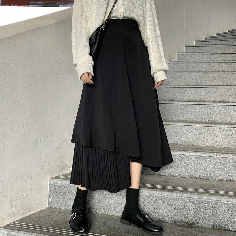 スカート レディース 送料無料 ミモレ丈 ひざ丈 膝下 変形 イレギュラーヘム アシンメトリー フレア プリーツ 切り替えデザイン 大人可愛い ウエストゴム カジュアル 大人 上品 おしゃれ お洒落 かっこいい 大人女子 こなれ感 個性的 クール モード系 モダン 無地 春 夏 秋 冬 オールシーズン 10代 20代 30代 40代 50代 オフィス OL 通勤 学生 通学 デート お出かけ 双子 韓国系 ファッション コーデ トレンド 流行 ブラック S M L